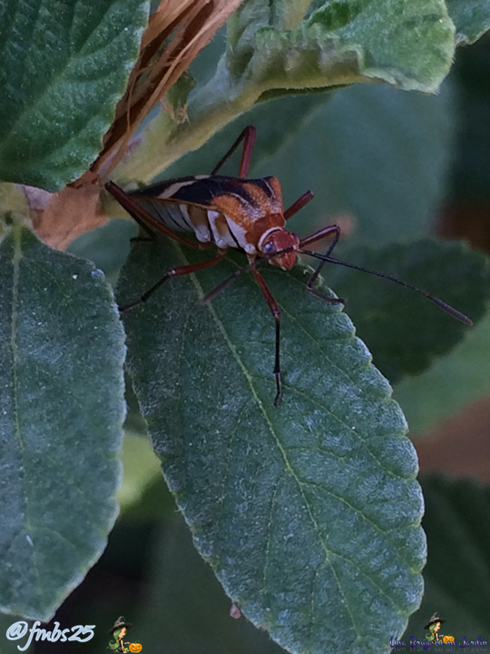 Esta vez se trata de otro chinche de la familia de los Hypselonotus, un Hypselonotus Interruptus, cuyo nombre común al parecer no tiene, y que viene siendo un pariente de la Chinche de Manchas Laterales (Hypselonotus punctiventris), que les publique la semana pasada. Investigando un poco más acerca de esta especie, cuya información es escaza en internet, pude percatarme que no es común verla en mi país, Venezuela, pues revisando los avistamientos, no se registran en aquí, sin embargo en países vecinos si es común verlos, por lo que puedo concluir que es un insecto de clima tropical.