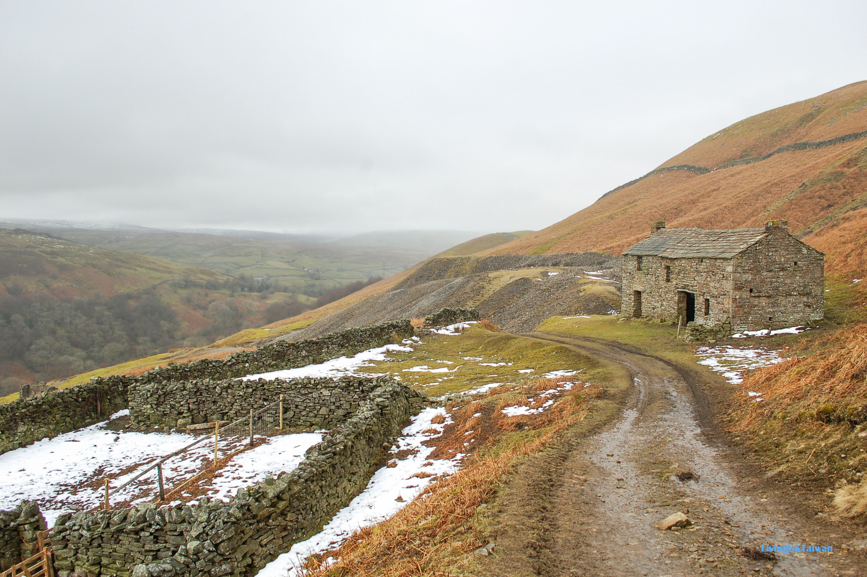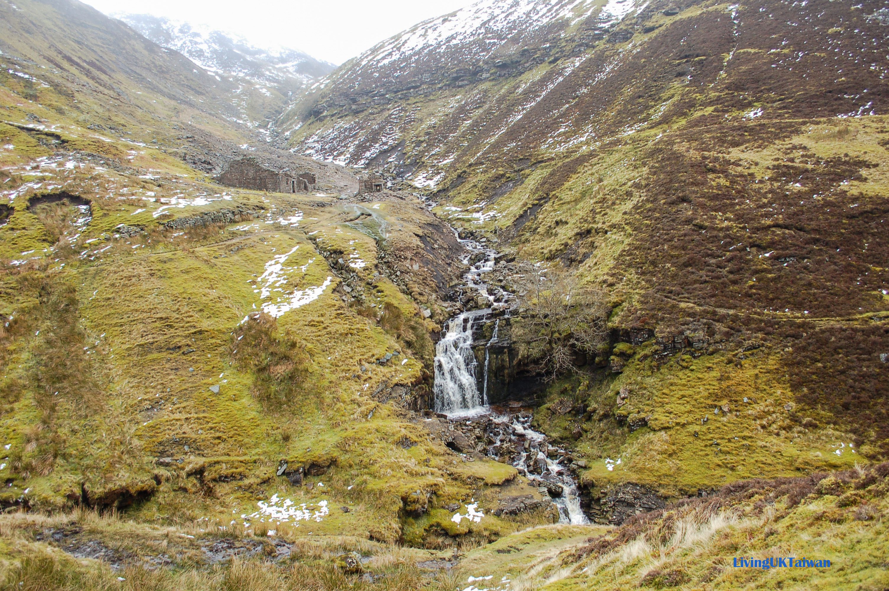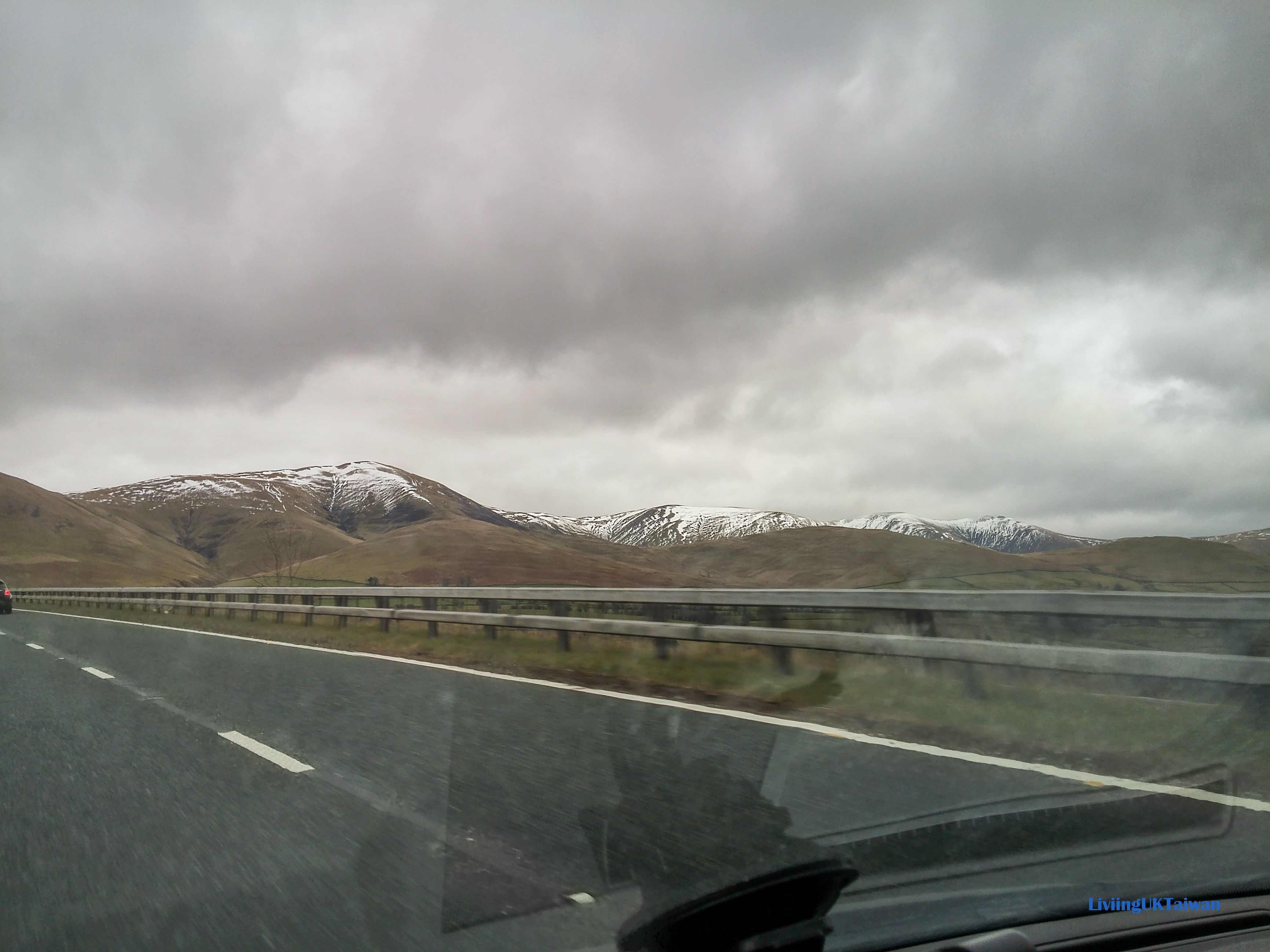 離開曼徹斯特後,我繼續北上到約克郡谷地。我們在高速公路上駕駛時感到很驚訝,因為竟然在三月天還可看到白雪皚皚的山脈頂部。當時還沒料到我在半小時後竟然會走在這片山路上。