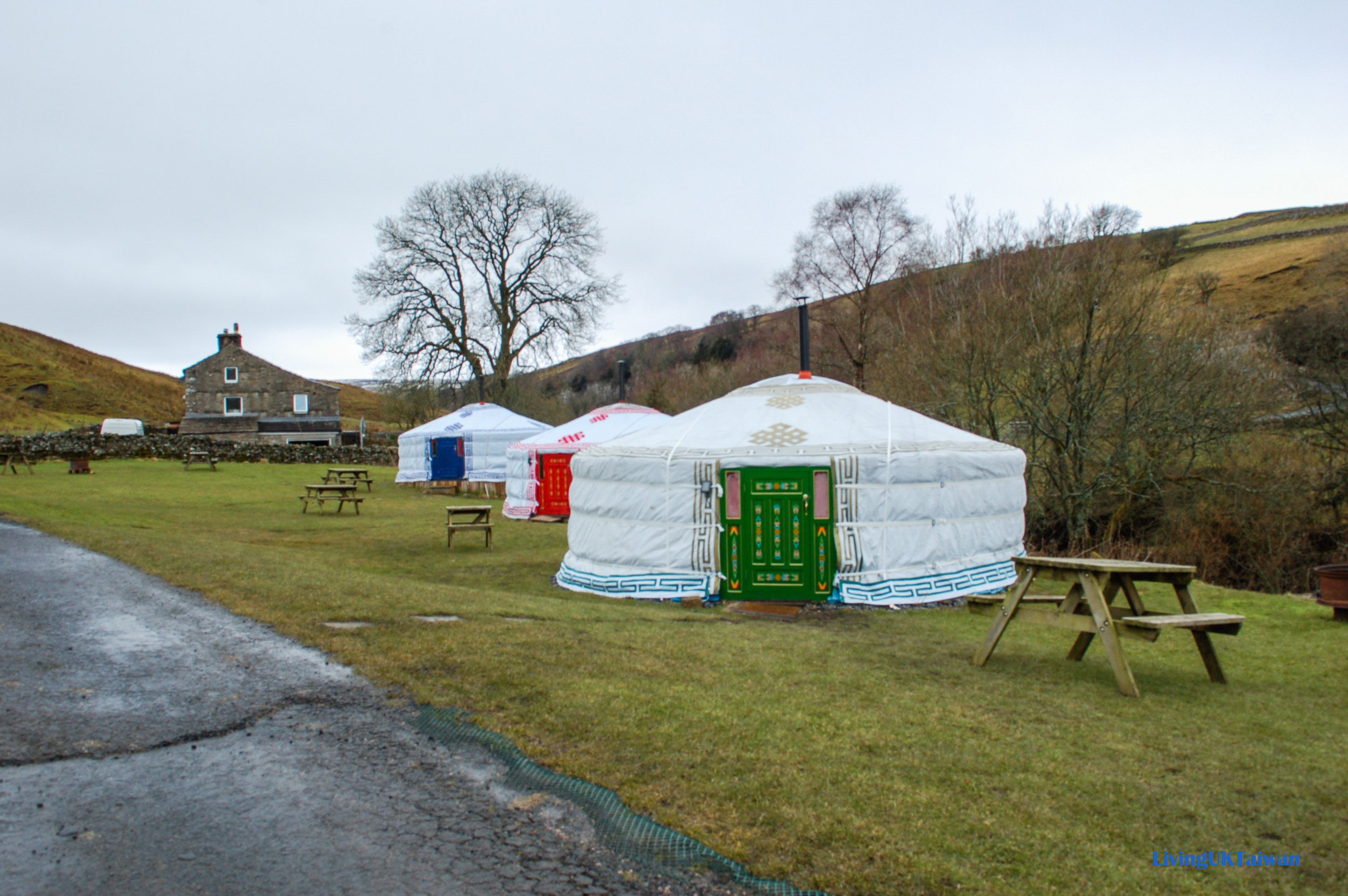 當初我規劃旅程時,是希望在約克郡谷地找一處較偏僻但又不太遠離我的主要途徑的地方。我在電腦上放大谷哥地圖看哪裏有心儀的民宿,結果在一處名叫Keld的小村莊,找到一個蒙古包營地。我知道這不是很英式,但我從來沒住過蒙古包,而網上照片看來實在太吸引,所以馬上訂了兩晚作為落腳點。