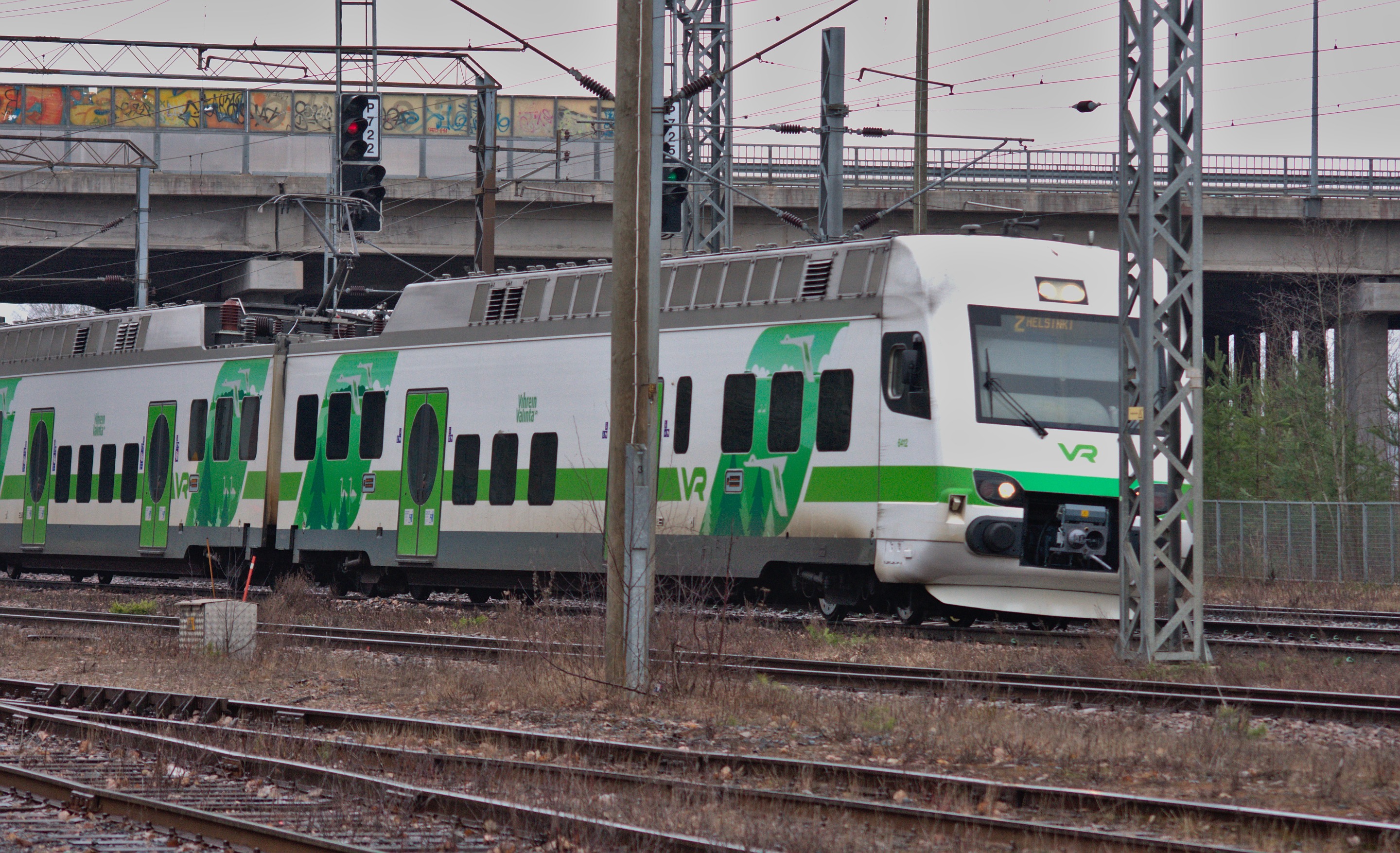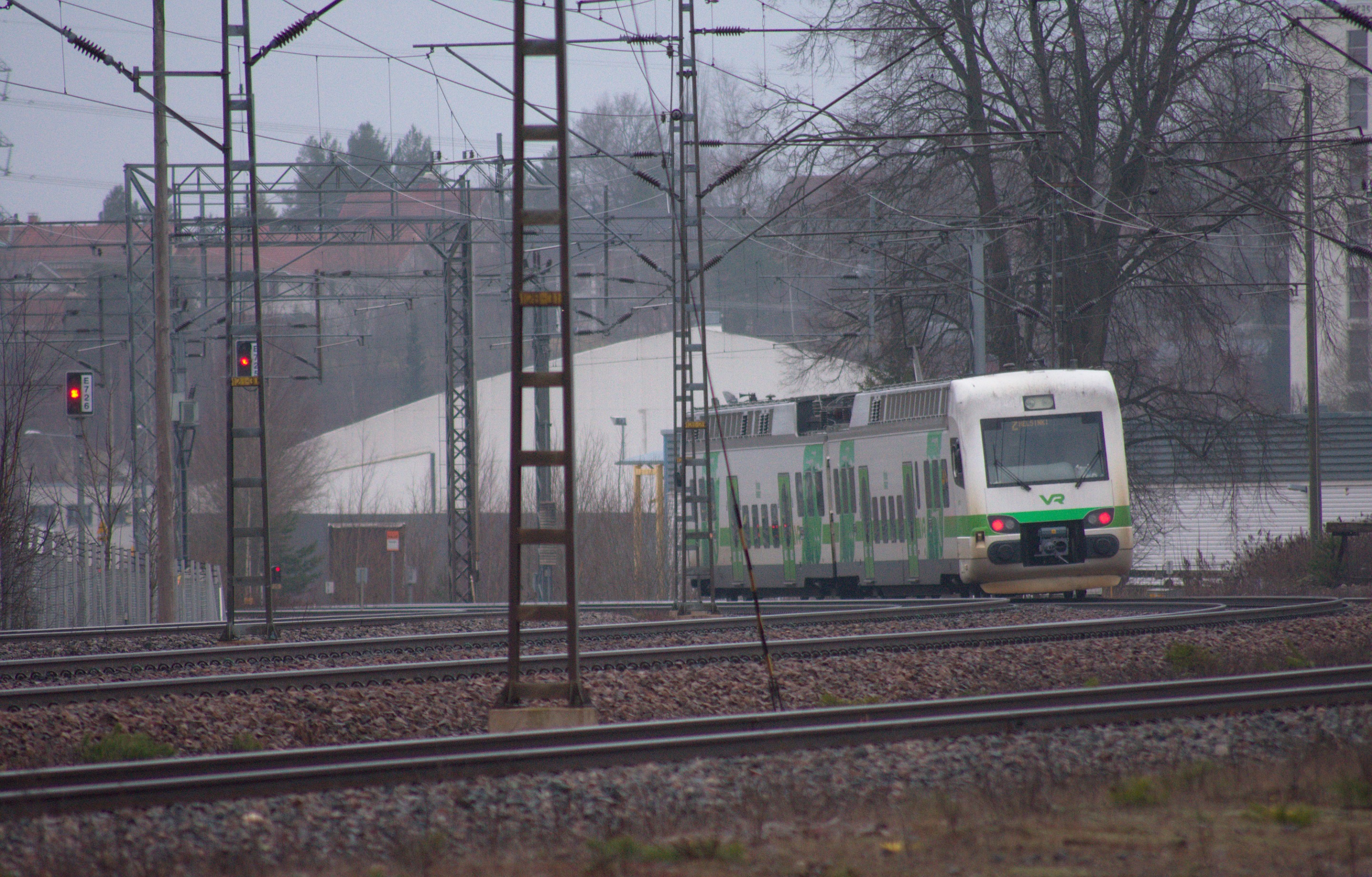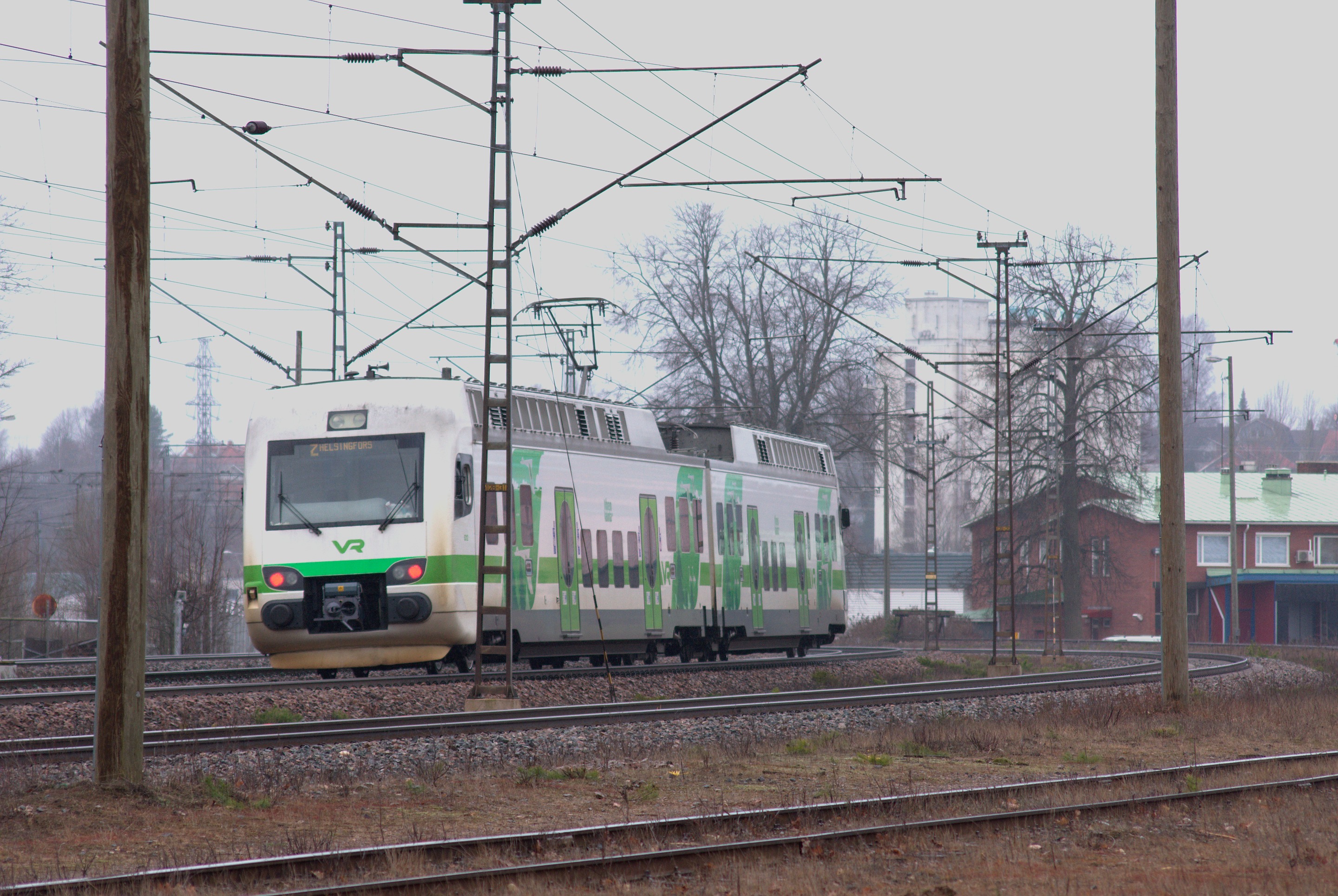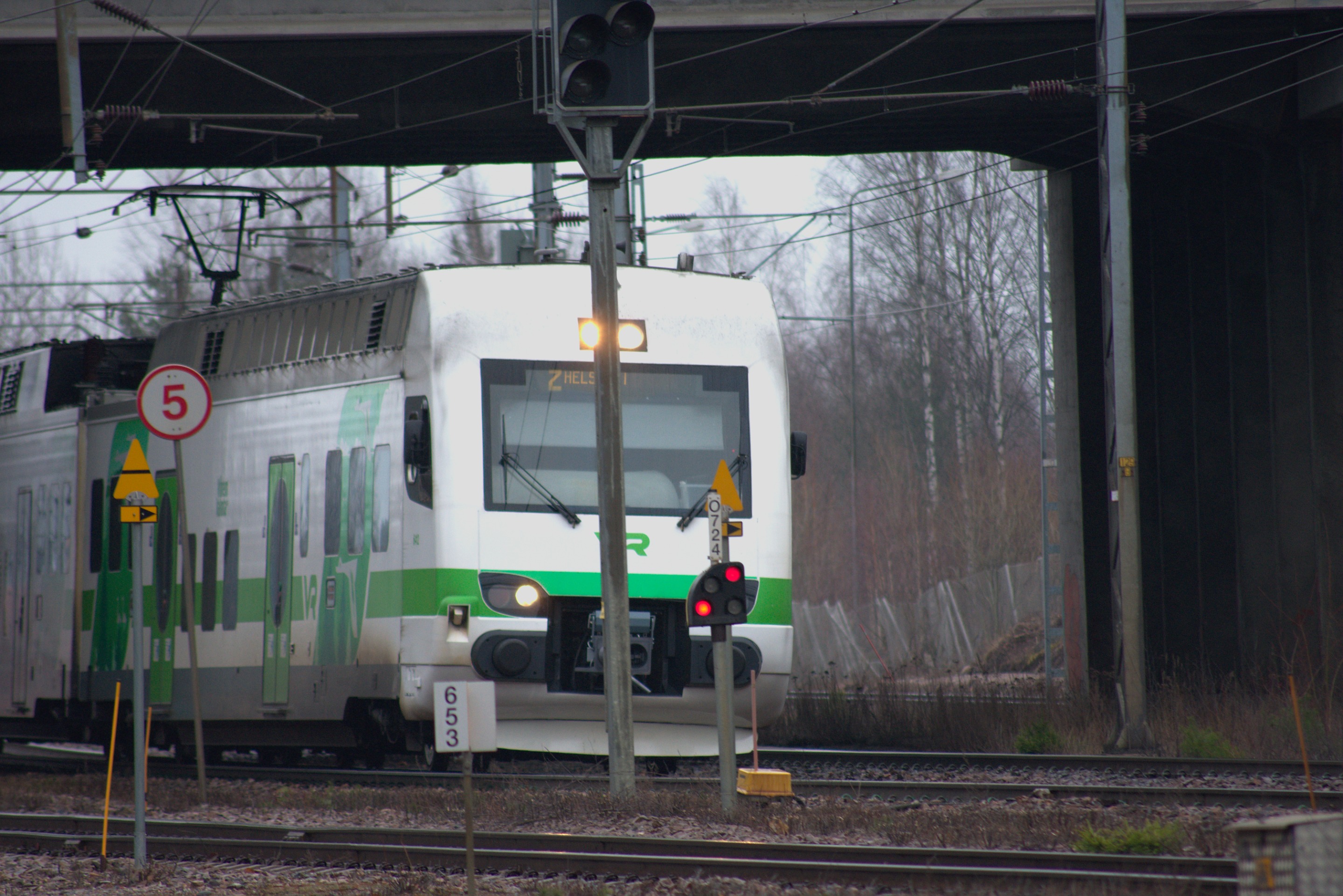 It takes about one hour for the local train to reach its destination, Helsinki.
