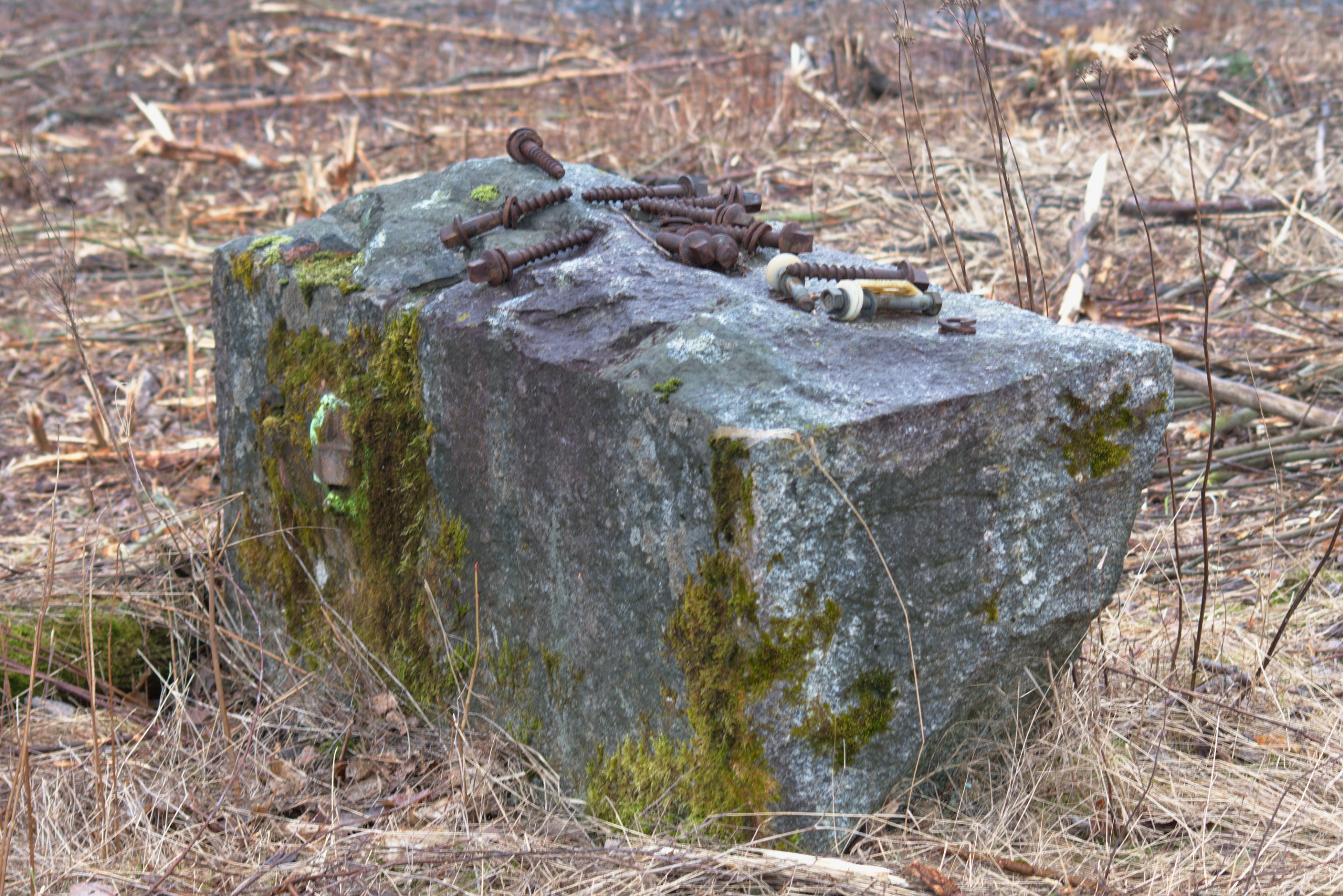 These bolts are used to fix rails to sleepers. I have no idea why they were left there.