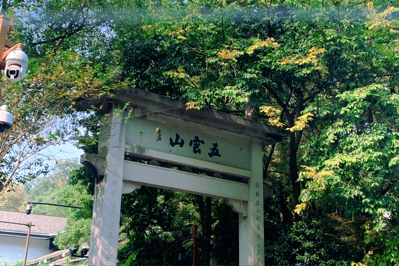 我跟麻麻立马决定换个景点,路过五云山门没忍住拍了张照片,这太有电影质感啦!因为临近饭点,我提议说我们去绿茶龙井店吃饭,吃完还可以在附近茶园走走。
