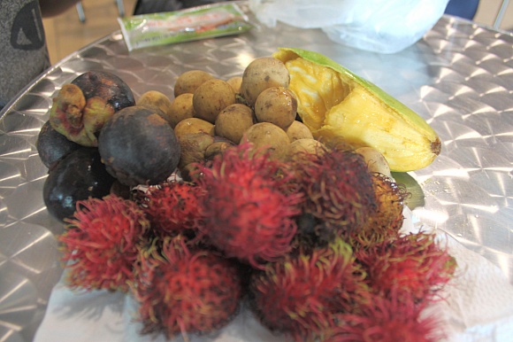 While we moved to island, we tried tropical fruits. Especially, Korea is one of the most expensive country for fruits, we should try tropical fruits as much as we can eat. There are 'lanbutan(bottom)','mangosteen(left)', longan(center)', 'mango(right)'.