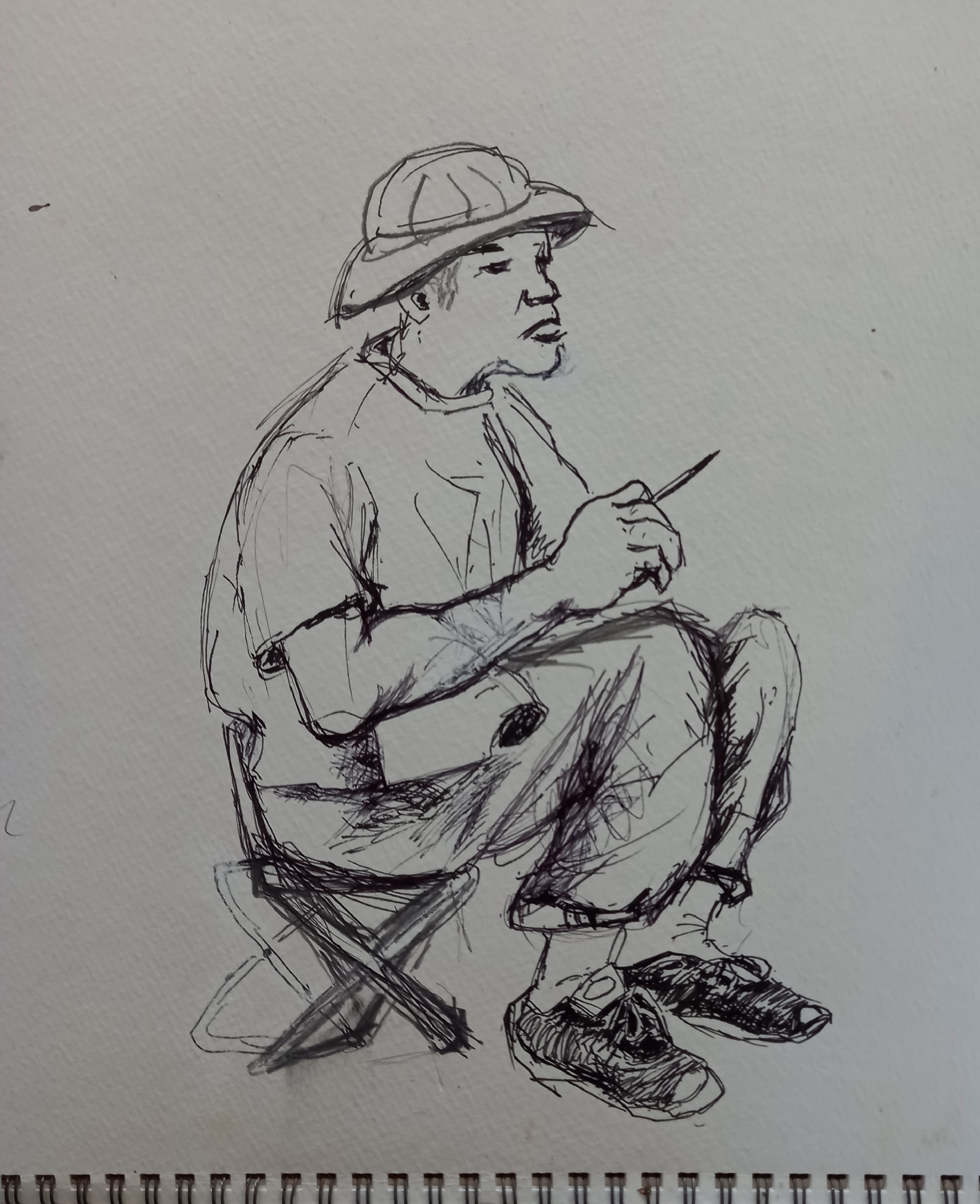 인물 스켓취veronicalee (86)in AVLE 일상 • 3 months ago 어느해 여름 스켓취 장소에서 그리려는 풍경을 면밀히 관찰 하는 회원의 모습 볼펜으로 스켓취 하다 Posted using SteemMobile #avle #sketching #portrate #kr