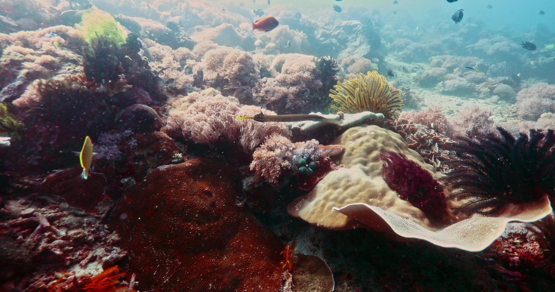 Don't forget to look up from time to time! In mid-water, you'll spot schools of Fusiliers and Long Jawed Mackerel swimming randomly, injecting even more life into this already bustling ecosystem. It's a sight that will leave you in awe of Mother Nature's creations.