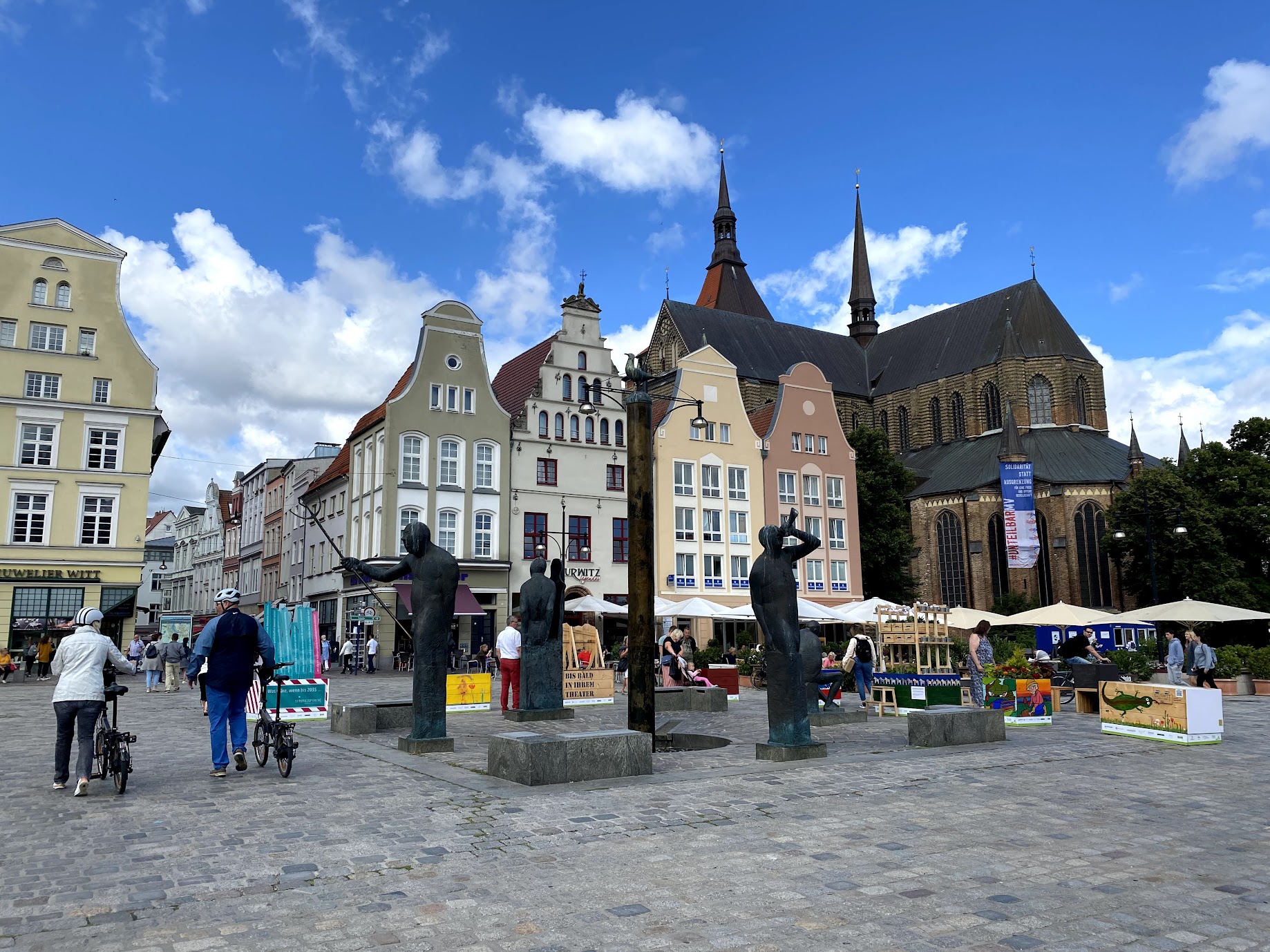 After spending some time at Café Bohne checking the ferry time table and other travel details related to Denmark in times of Covid and also a possible camping location on the other side, was now time to go out in the sun to discover Rostock old town pedestrian area.