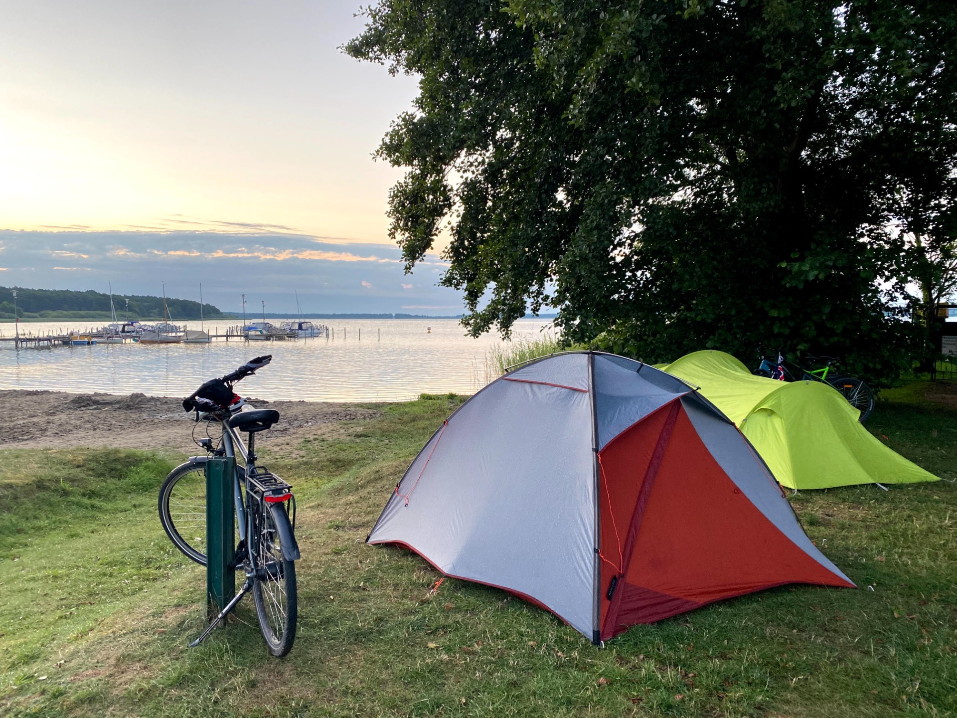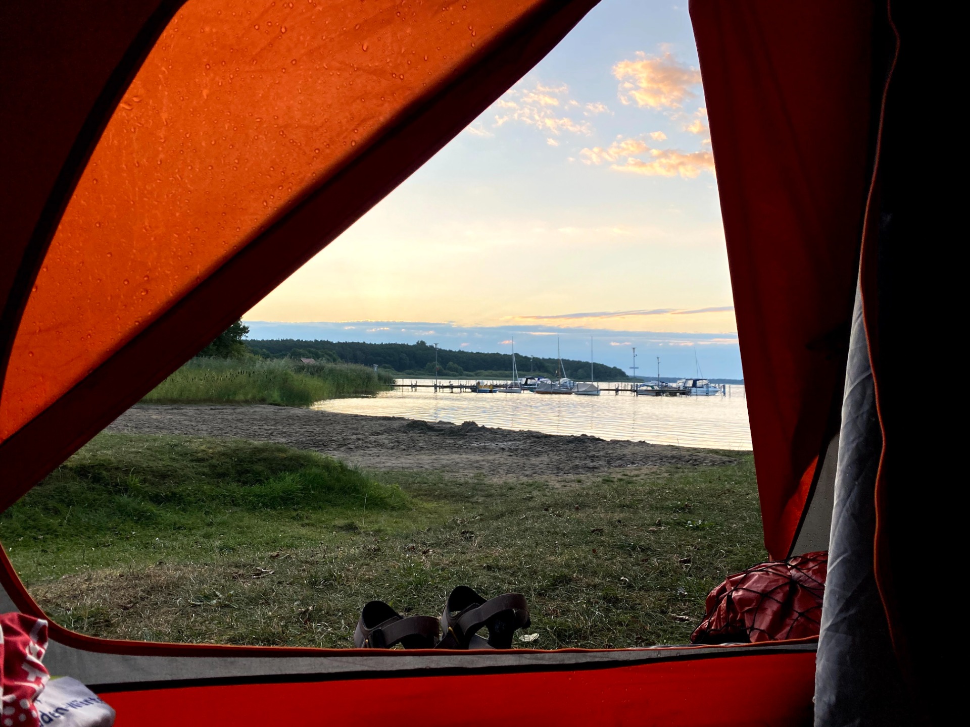 Due to showers announced for the evening and over night I set up the tent quite early today in a nice camping in Krakow am See. Unfortunately I couldn't find a phone charger to buy anywhere in town to be able to navigate further on EuroVelo 7 so I asked for help at the camping reception. I was lucky to meet a nice guy there when I did my check in and he let me use his charger which made my day.