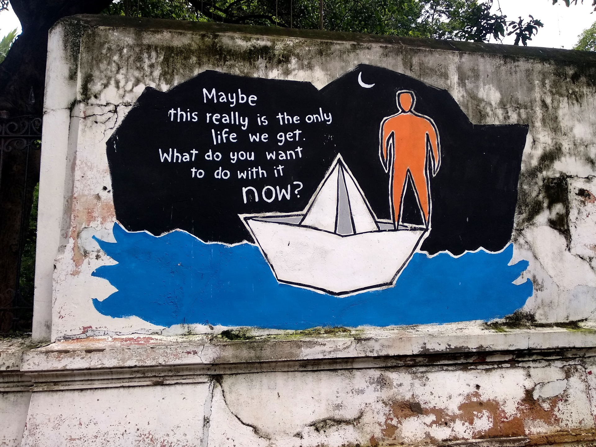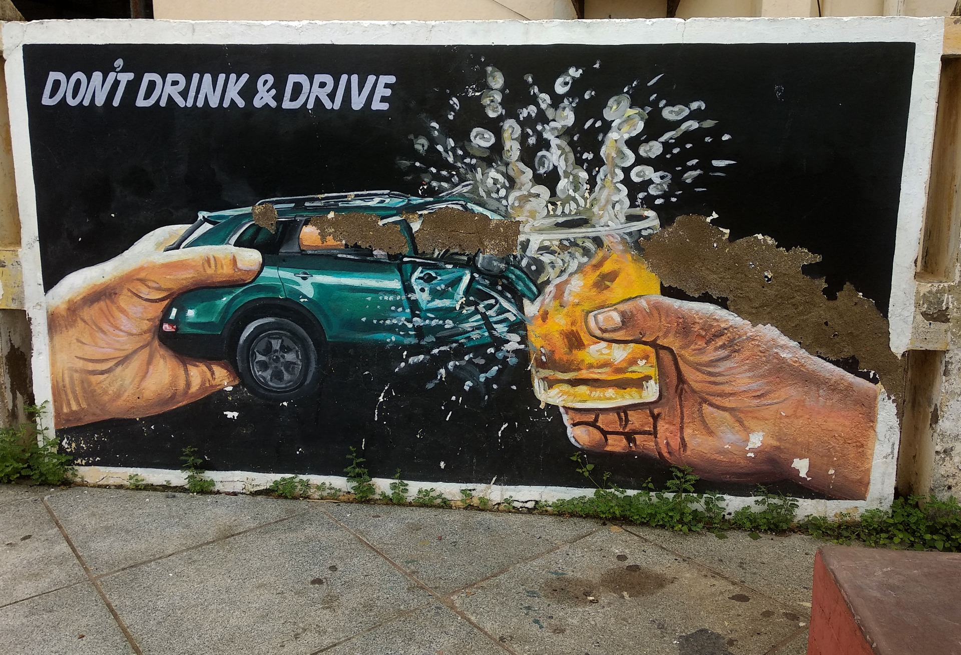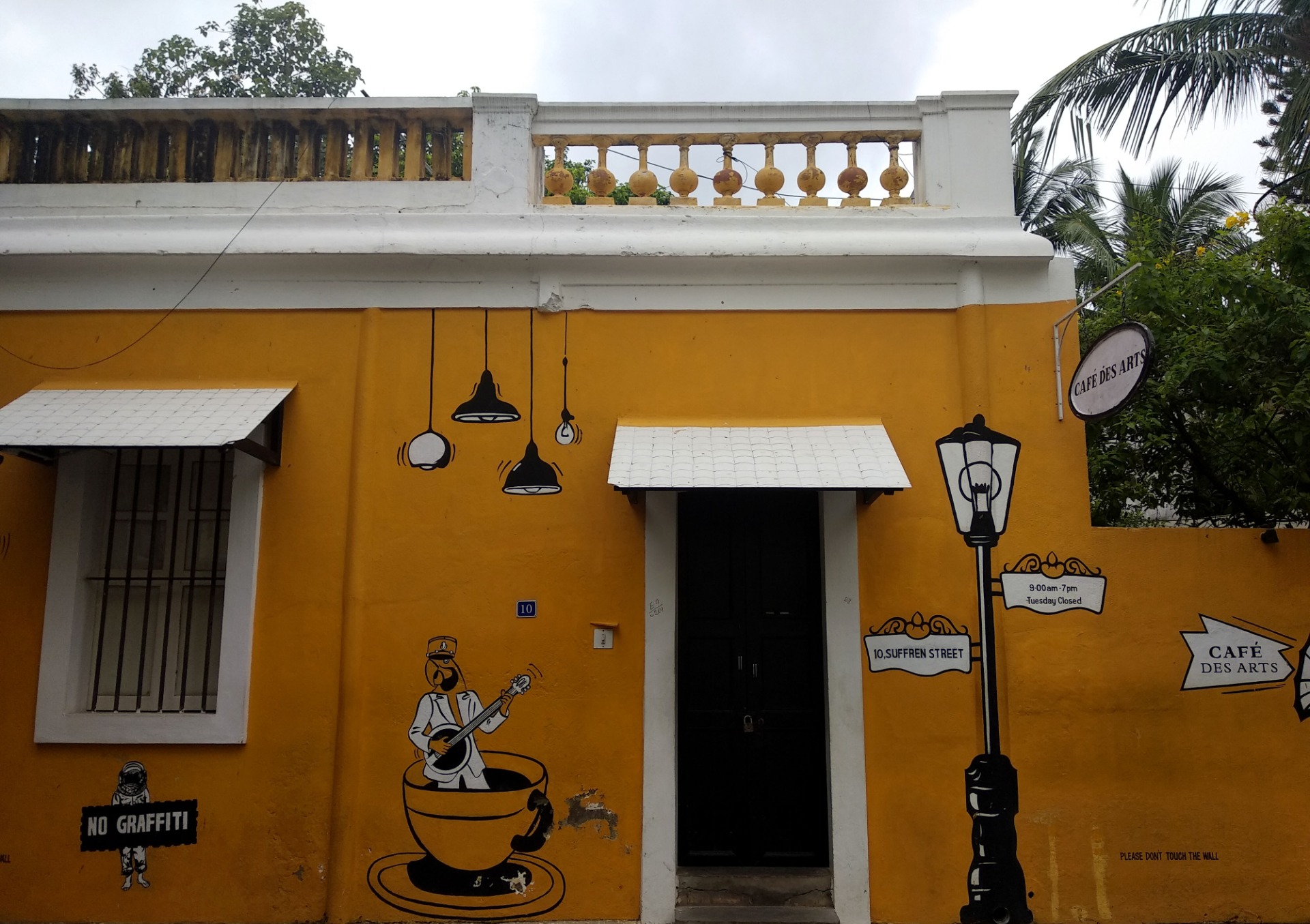 The walls on most streets of Pondicherry is made interesting with the graffiti. Most of them convey awareness messages and quotes. Few building ruins are also painted to keep up with the rest of the street.