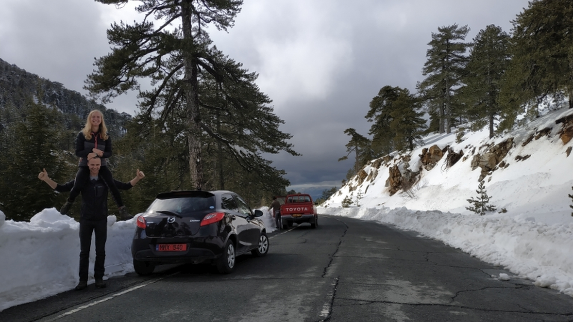 What are the differences between these two? I will reveal only one! The first one is about 2918 m high, the second one - only 1952 m high. Once we reached it Kamile said,- "We came to Cyprus to escape the snow, but it looks like it follows us wherever we go!" It is important to mention there is a military base on the top of it, but some people said it is possible to reach some kind of viewpoint. Maybe, maybe not! We did not try!