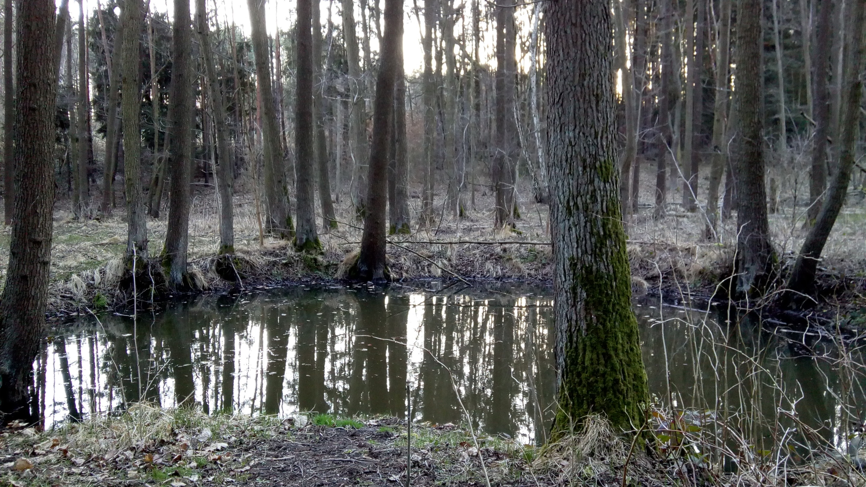 Allied bombers at that time under heavy fire from German flake dropped part of the bombs into the local forests. We can find over a hundred craters here, some of which are still flooded with groundwater.