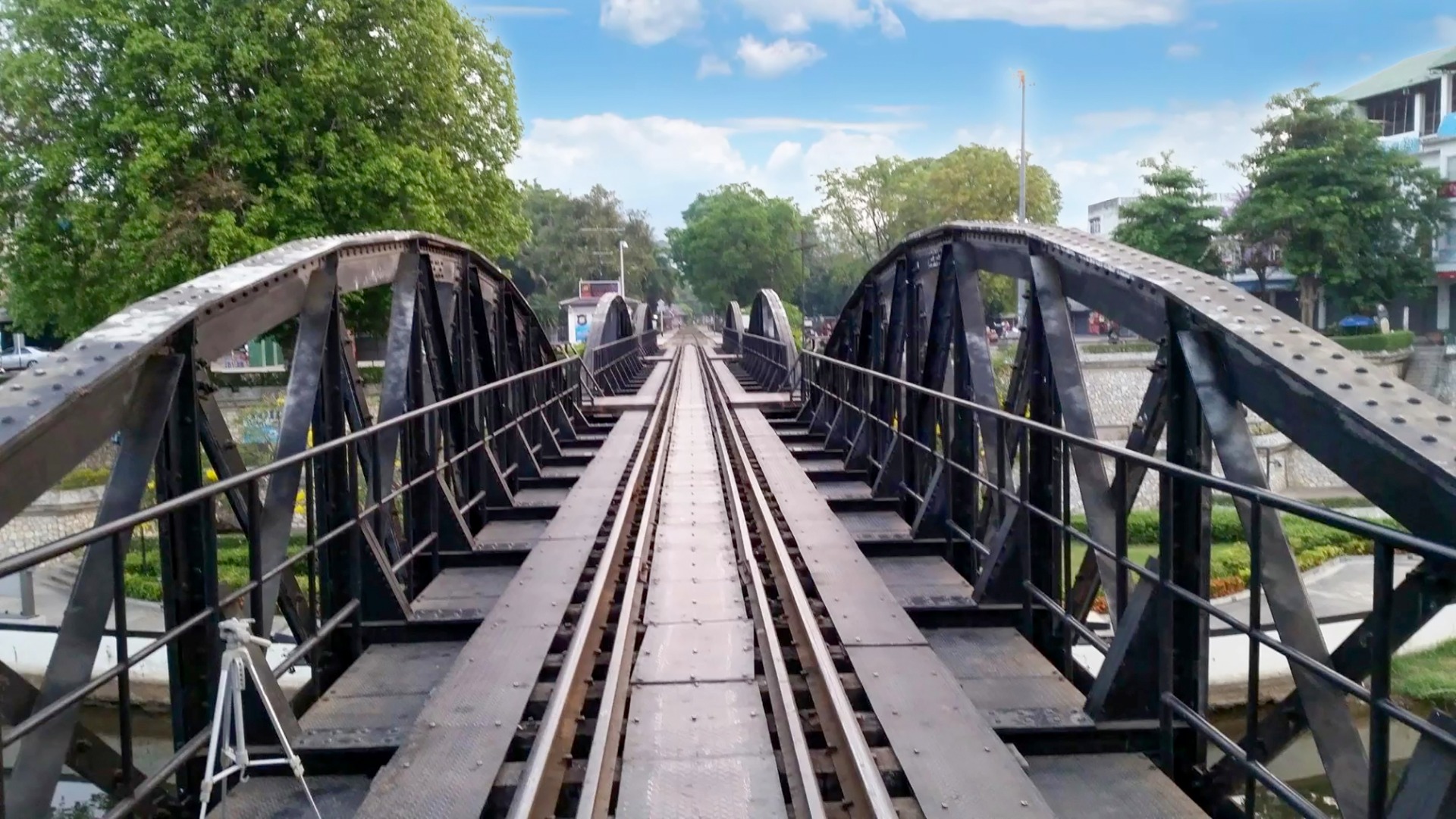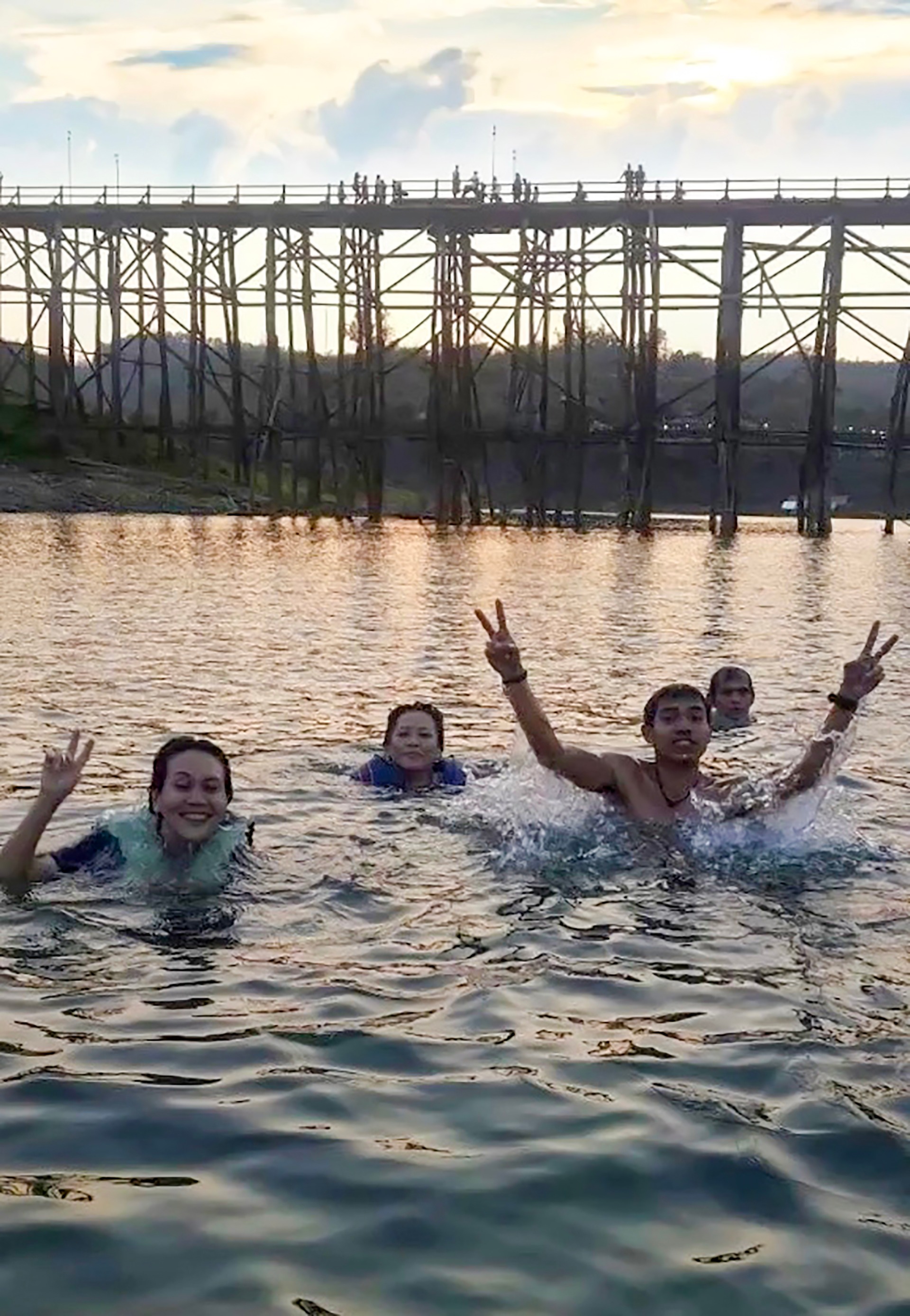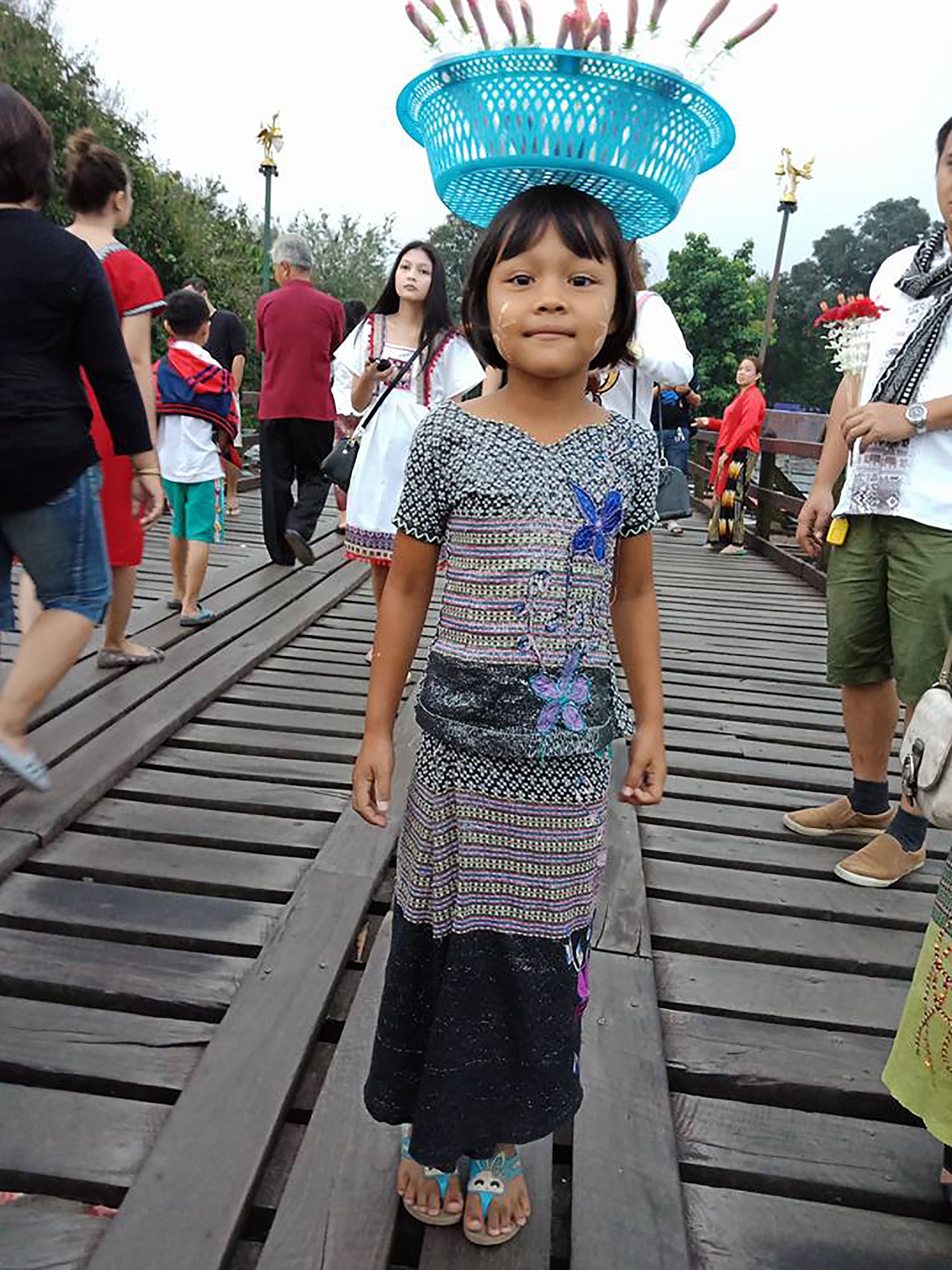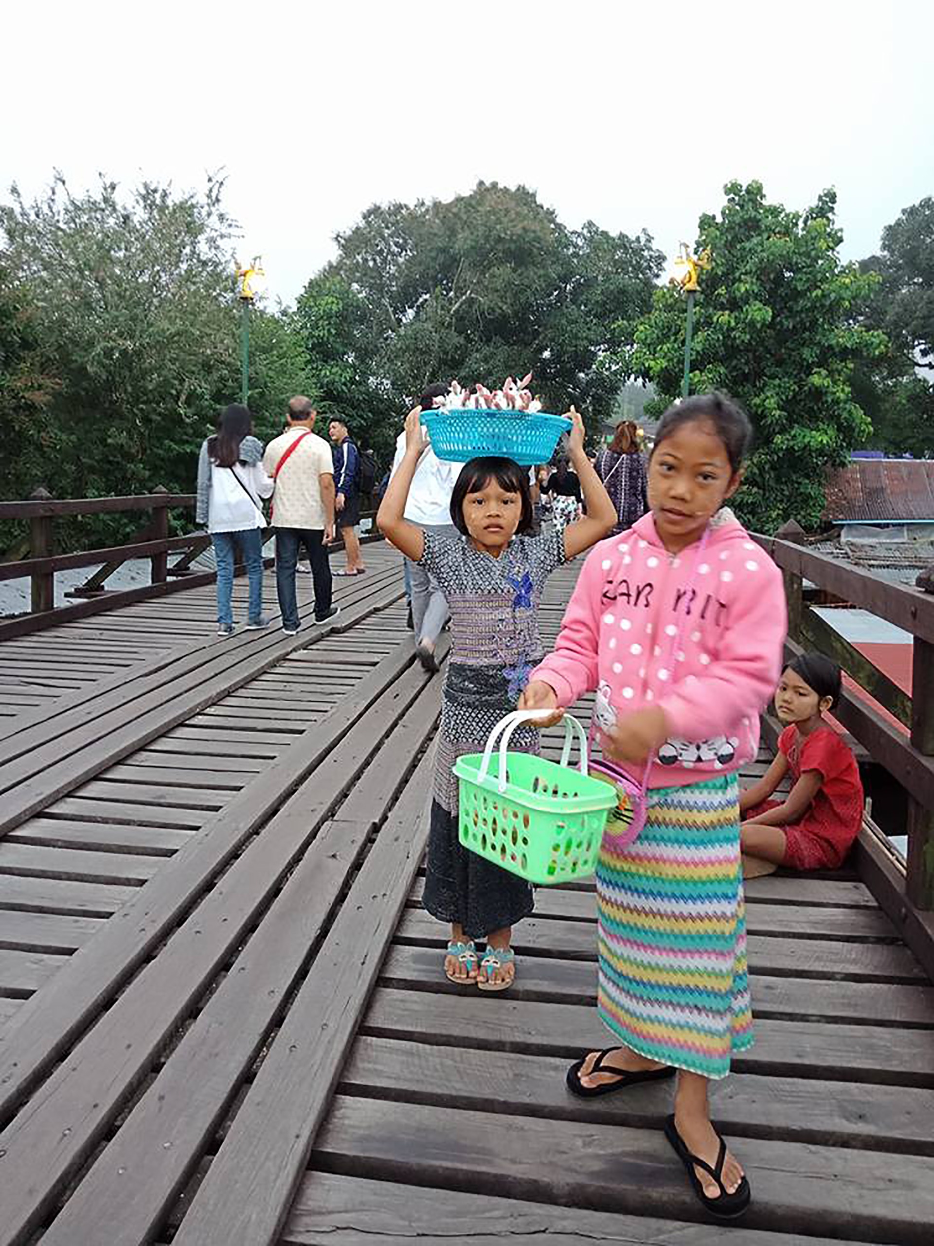 We posed for photos on the bridge. I give the money 20bath to the kids.