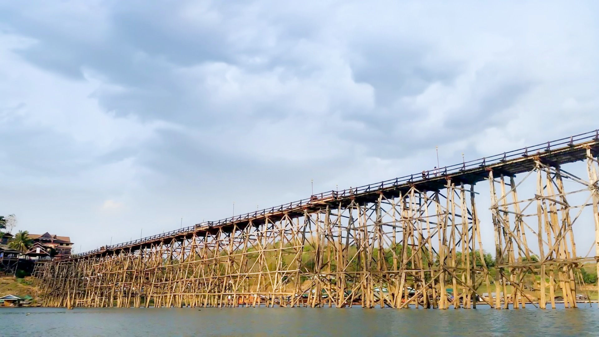 The large bridge represents the divide between the Thai side and the Mon side. The bridge to get to the new temple is not any bridge but I believe it to be the largest bamboo bridge in the world.