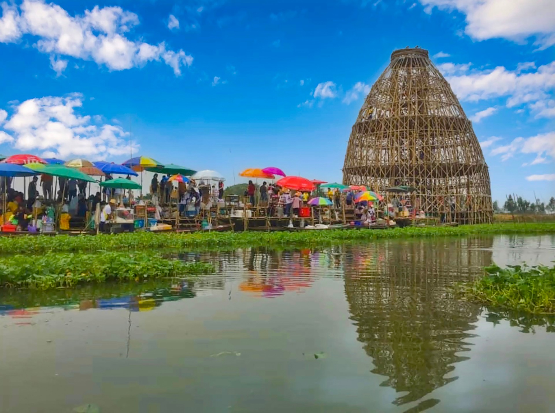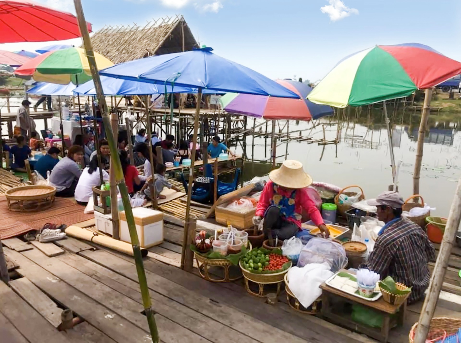 This not Bangkok and there is not much else for a tourist to see, but that is not the main draw of this market. It is for people to buy goods / foods that they need. See the bamboo structure in the photo, they use baskets to "catch fish"...big fish. It is done inside this structure. Then you can take your fish home for cooking :-)
