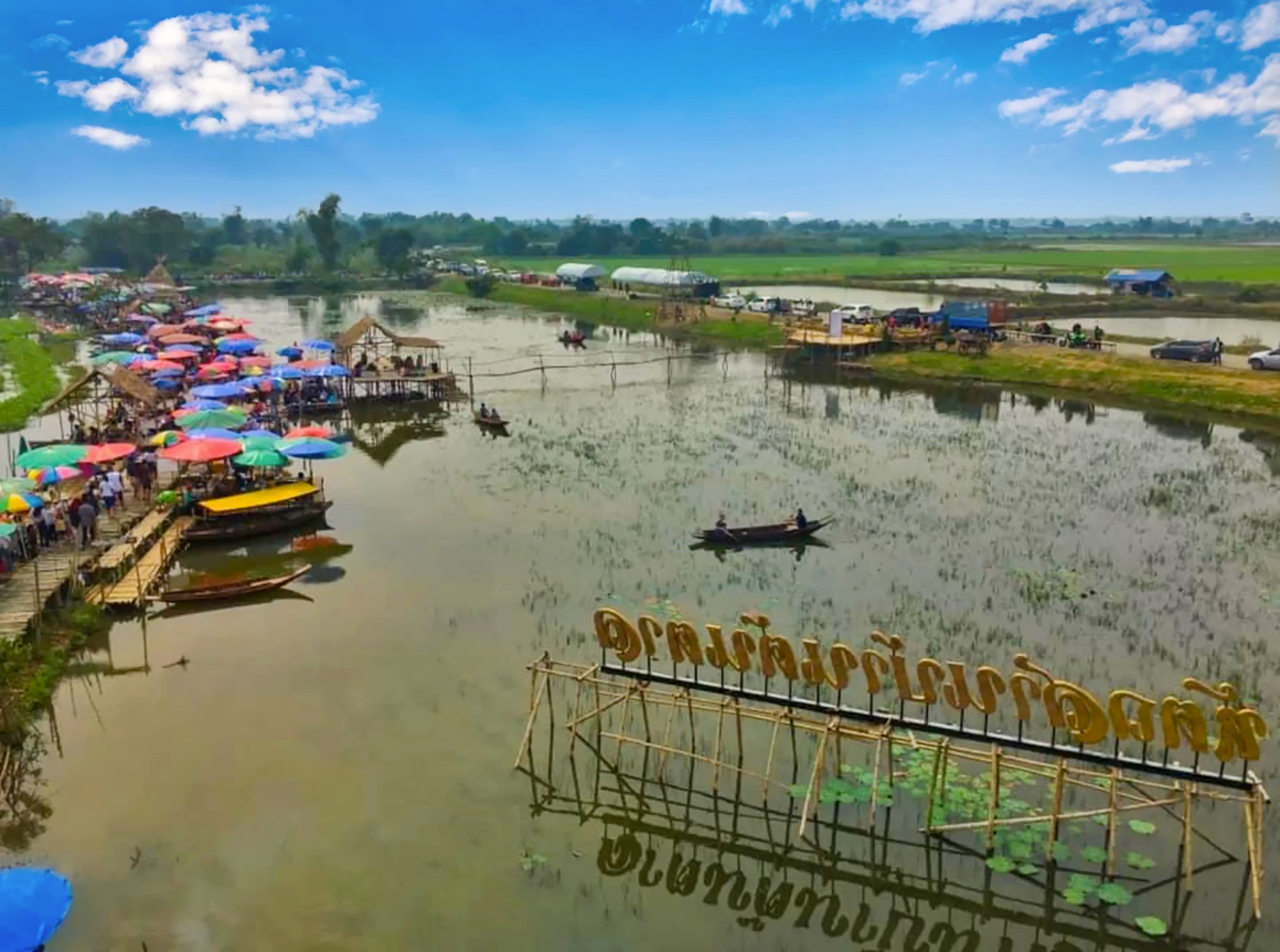 In the beautiful province of Suphan Buri, which is about 1 hour north of Bangkok, you can visit and experience true Thai "culture / customs" of a floating food market. This simply means various boats all go to a certain destination to sell their goods, foods and even hot local food.