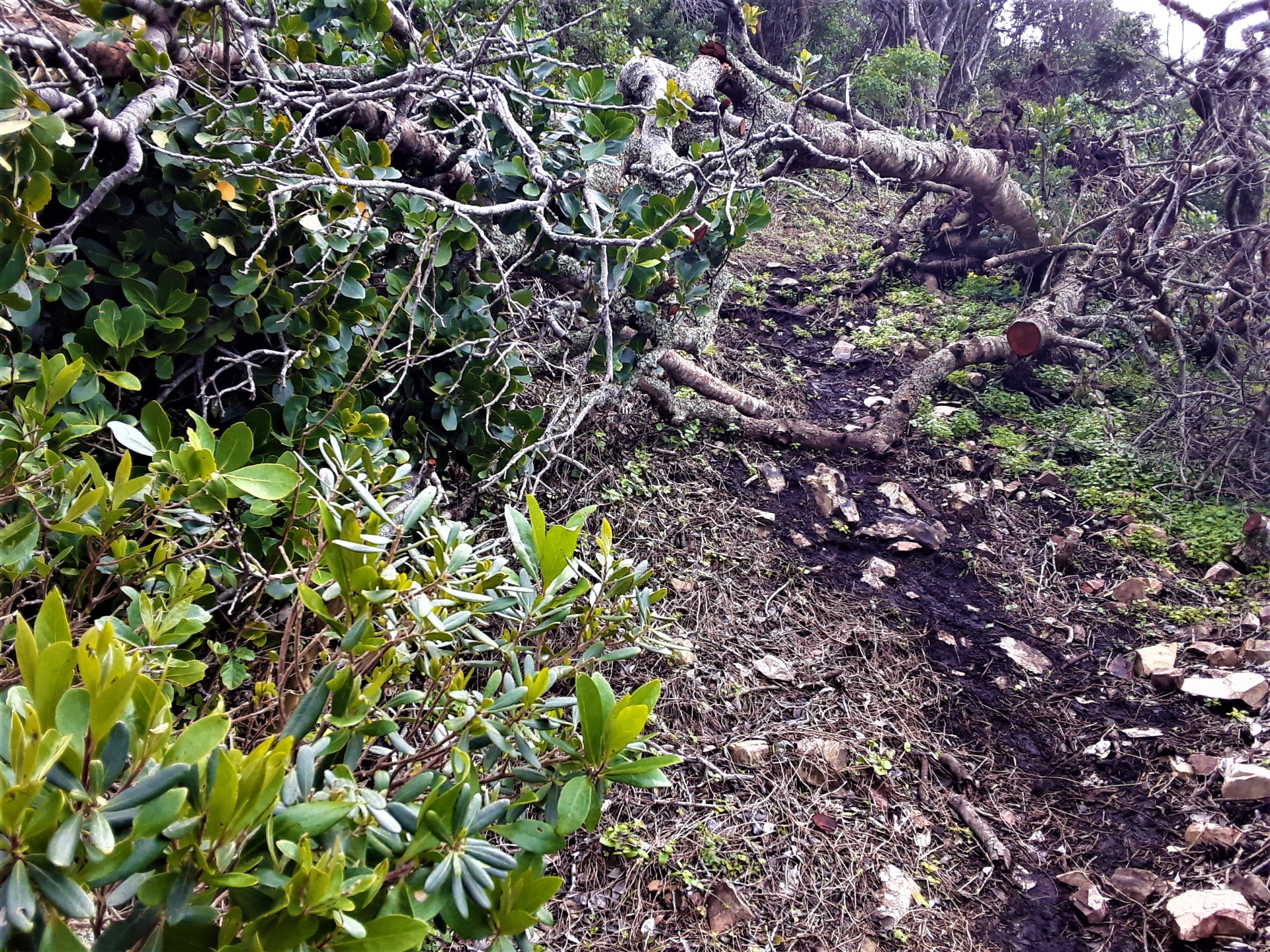 The particular stretch of coastline that I frequent on my hikes lies between the towns of Knysna and Plettenberg Bay, which is a rugged and rocky stretch of coast consisting of high cliffs and rocky beaches that are impossible to reach by boat. One in the towns though, there are accessible beaches or a nice lagoon mouth in either town for sailing vessels. And both towns are situated on the main coastal highway that runs along the African south coast. So it’s easy to get here though harder to leave.