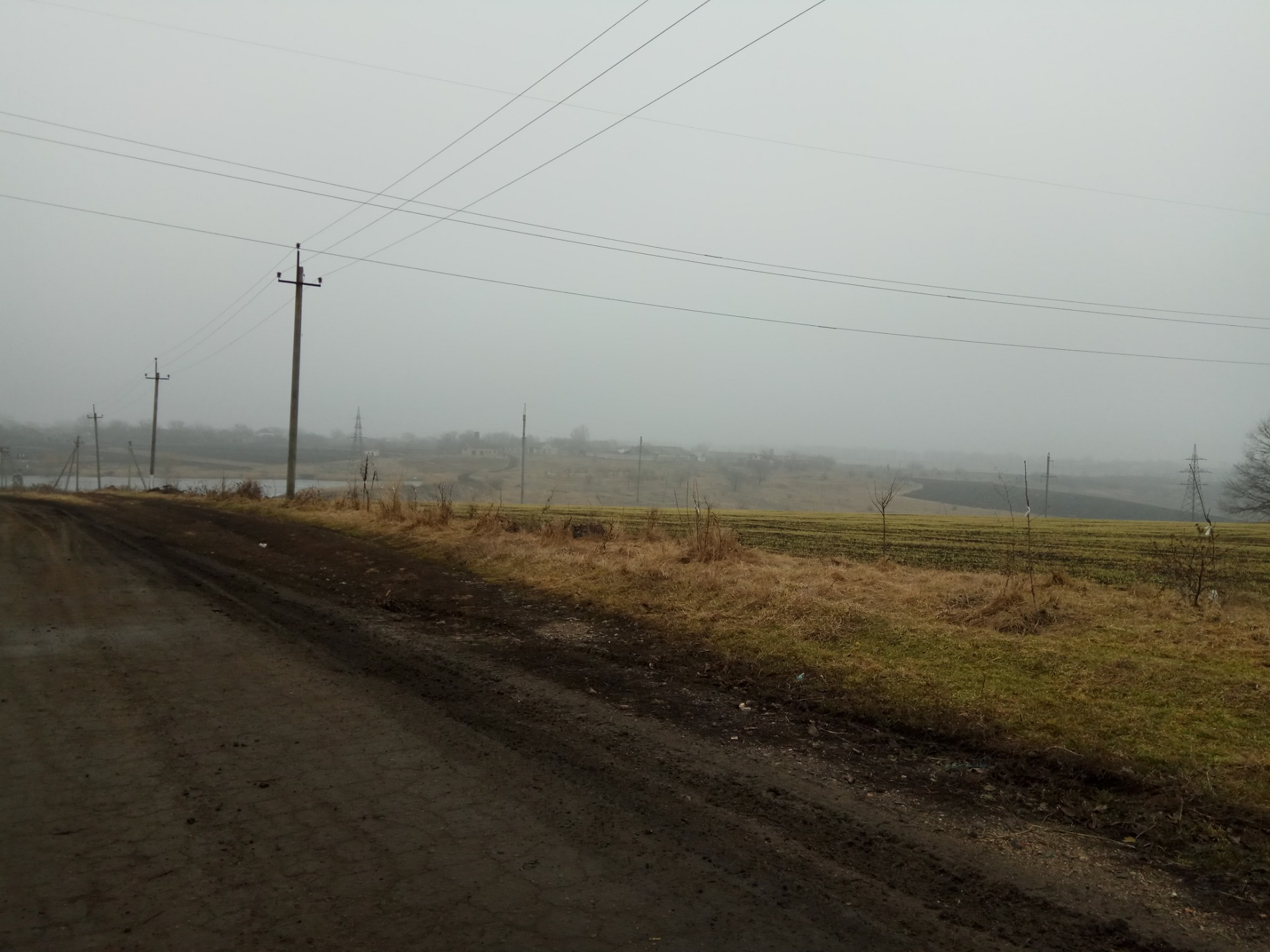 I turn and go down to the lake. It is perfectly visible from the hill. The lake is not too big, but not tiny either. I go down the asphalt road. But alas, there is not much asphalt here. The roadside is covered with pits and a swamp.