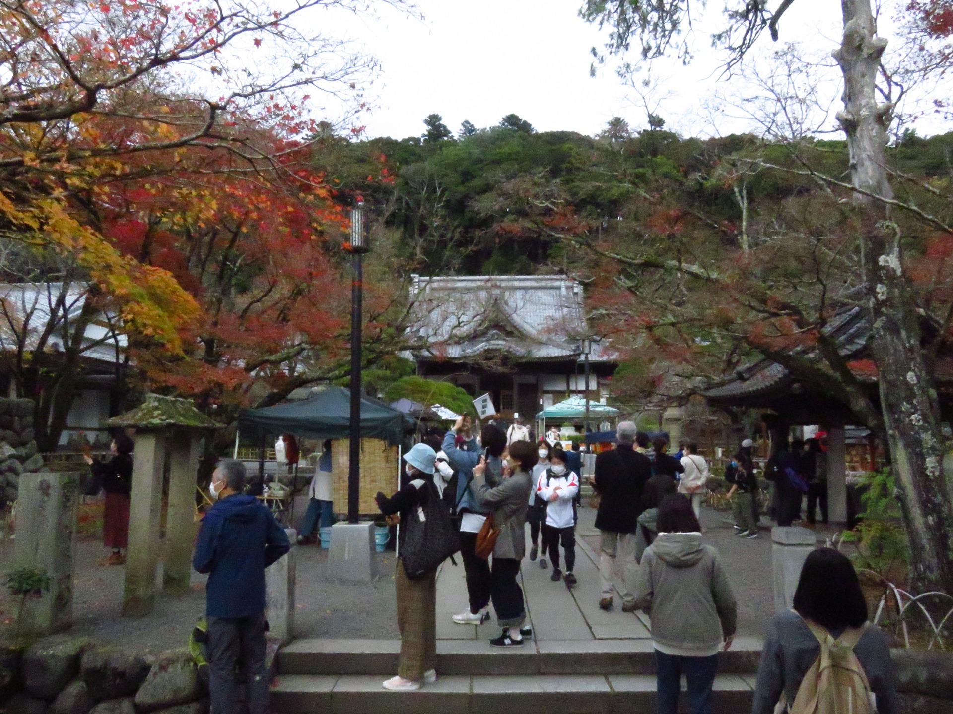 The season for beautiful leaves and warm glowing vistas in the warmth of the midday sun is almost over and winter is approaching rapidly in Japan. This was our last chance to see some Autumn leaves this year. Many trees had already shed all their leaves and the last stubborn maple trees still with green leaves were starting to turn red.