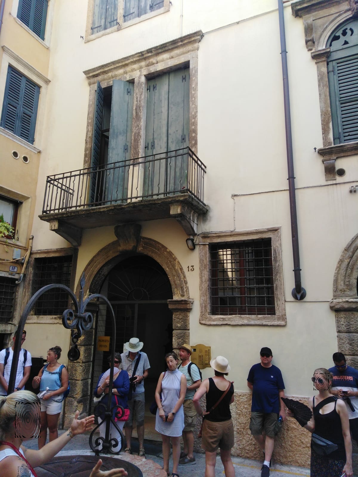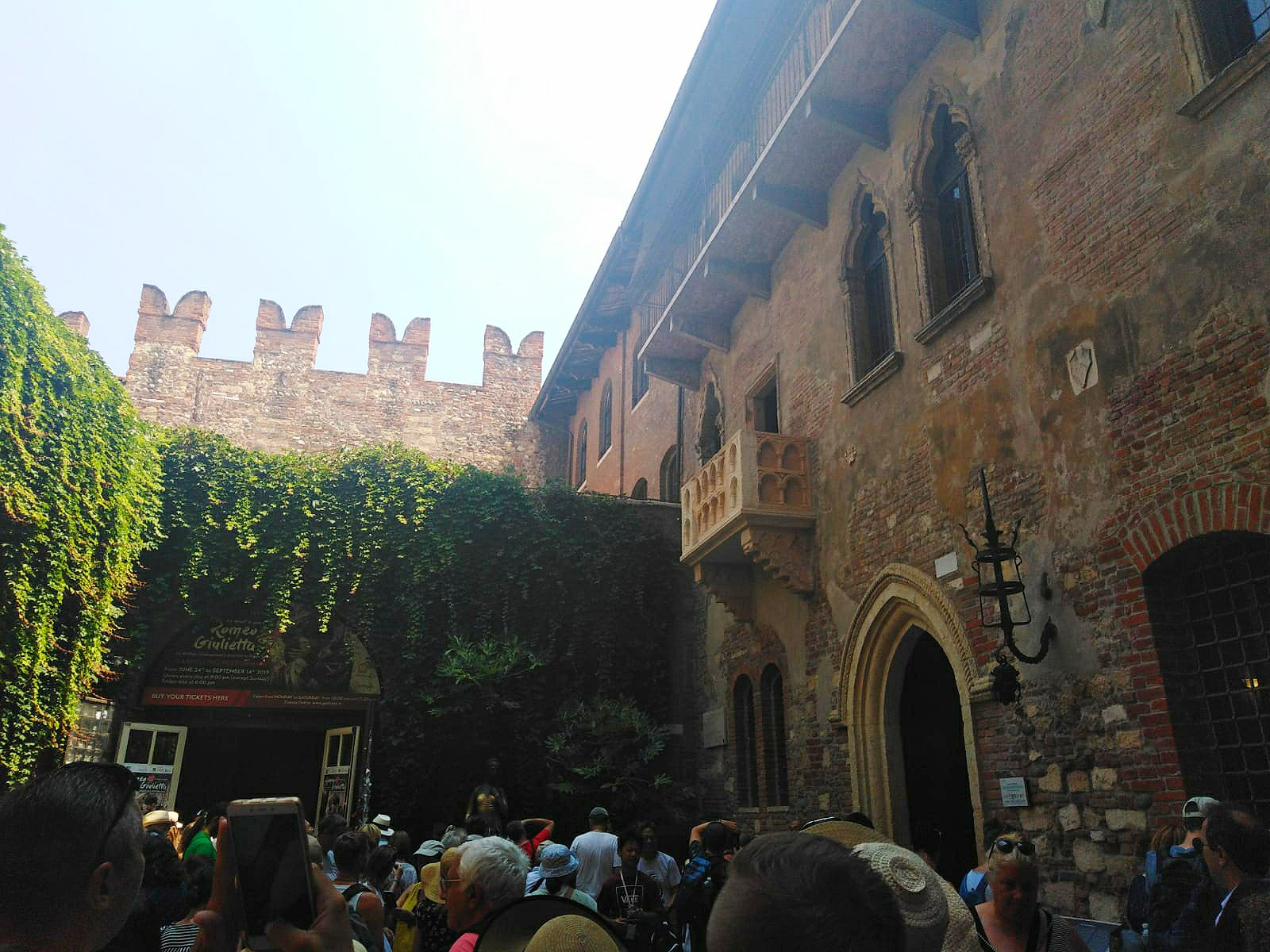 Further we walked to probably the main traction of Verona: the house of Juliet. I must say that this is the main attraction I had been looking forward to most in Verona. Personally, I found the balcony and the house relatively unspectacular, but a lot of people crowded the entrance gate. No other sight in Verona was as crowded as the house of Juliet. Maybe it was also due to the fact that we visited the house around noon, i.e. at the main time. We didn't even get all the way to the balcony and got lost in the crowd. I thought the balcony was nice, but nothing more. Nevertheless, it should not be missing on Verona's travel list. Even though Juliet and Romeo of course never really existed and William Shakespeare never visited Verona, one always connects this city directly with the lovers.
