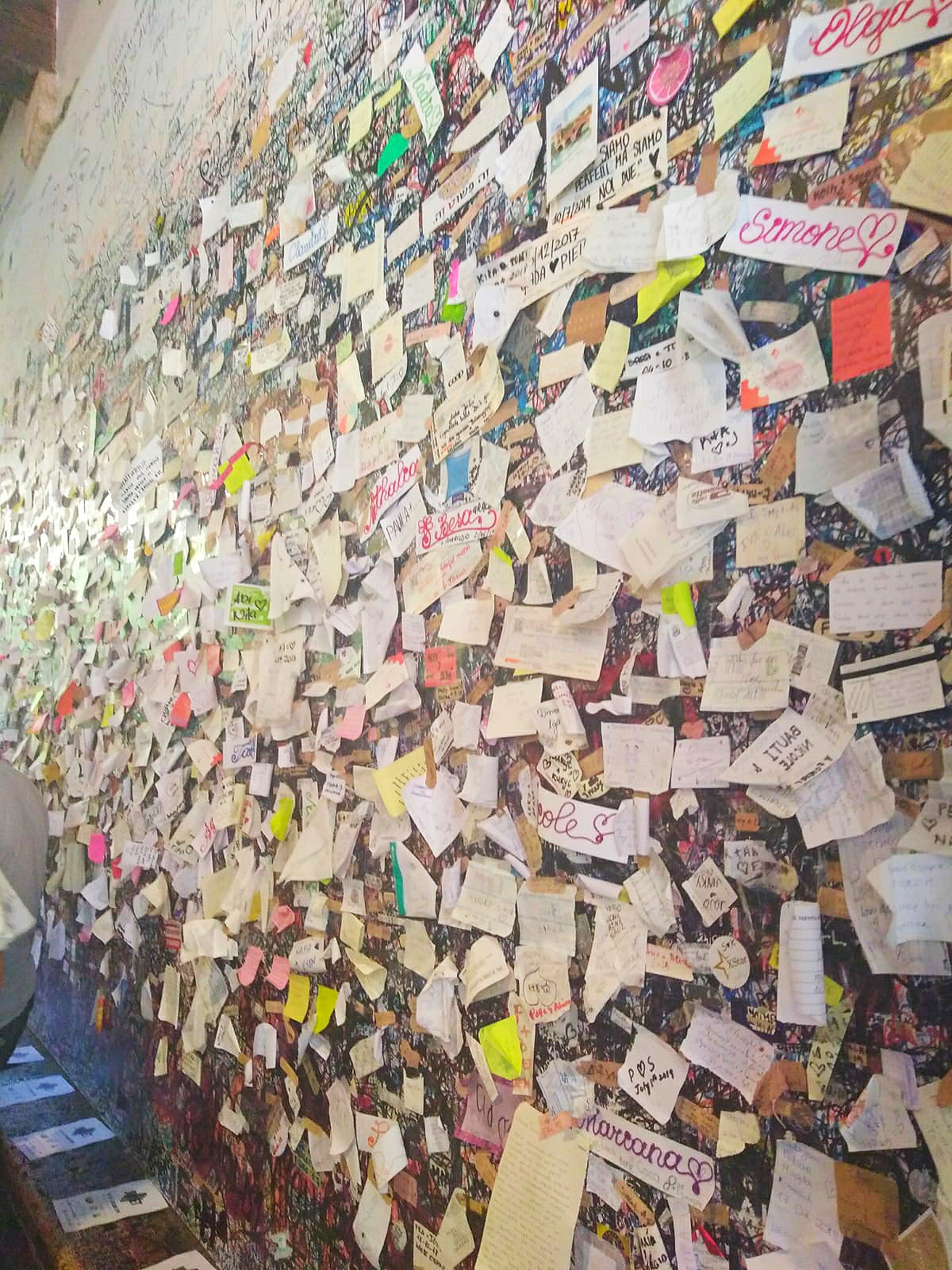 But before you get to see the balcony and the statue of Julia in the courtyard, you have to squeeze through a very narrow entrance. Here you will be surprised by thousands of little pieces of paper in different colours - hung up by lovers who swear their infinite love. The slips of paper extend from the floor to the ceiling. According to popular belief, those who hang their vows of love on the wall here will be faithful to their partner for the rest of their lives and will be happy. Even though I honestly don't believe in such a thing, I still found the notes on the wall quite nice - for taking pictures for sure ;)