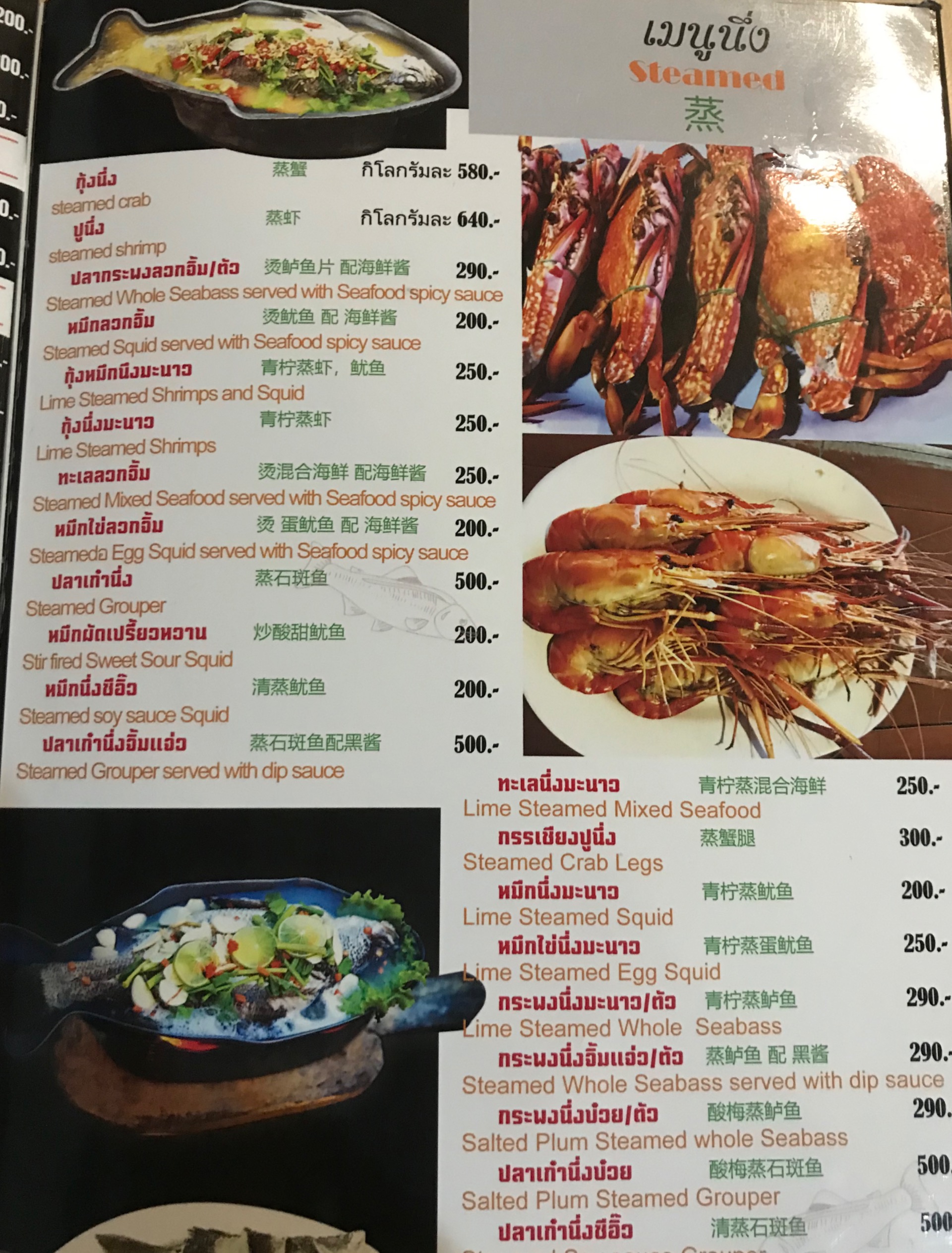 There are a lot of items on the menu. I don’t know what I should order, because I want to eat everything. 😆 😆 The menu is in 3 languages: Thai, English and Chinese. It’s really good for foreign tourists. If you don’t know what an item is, there are pictures of the food, so it's easy to understand and order, I think.