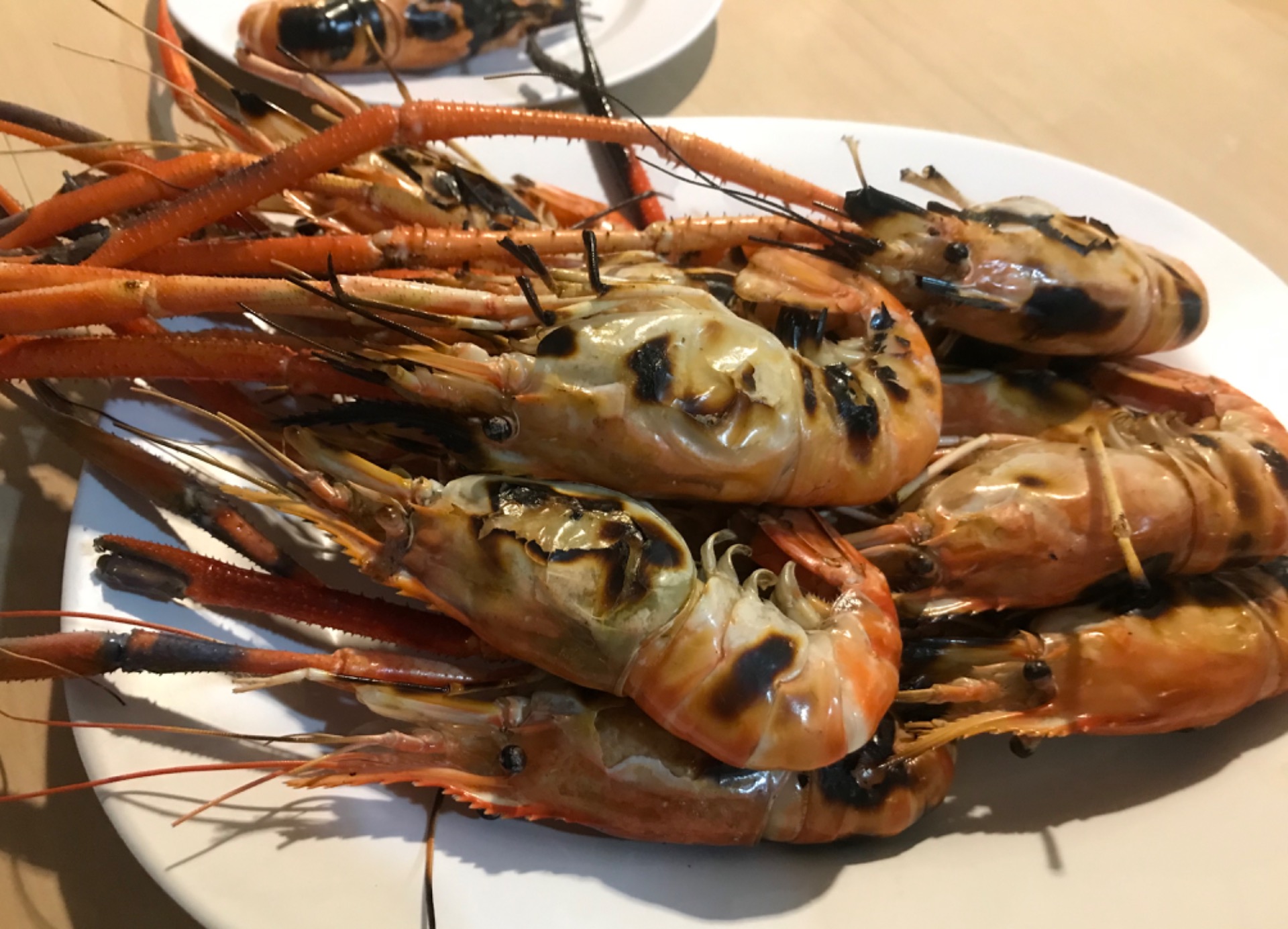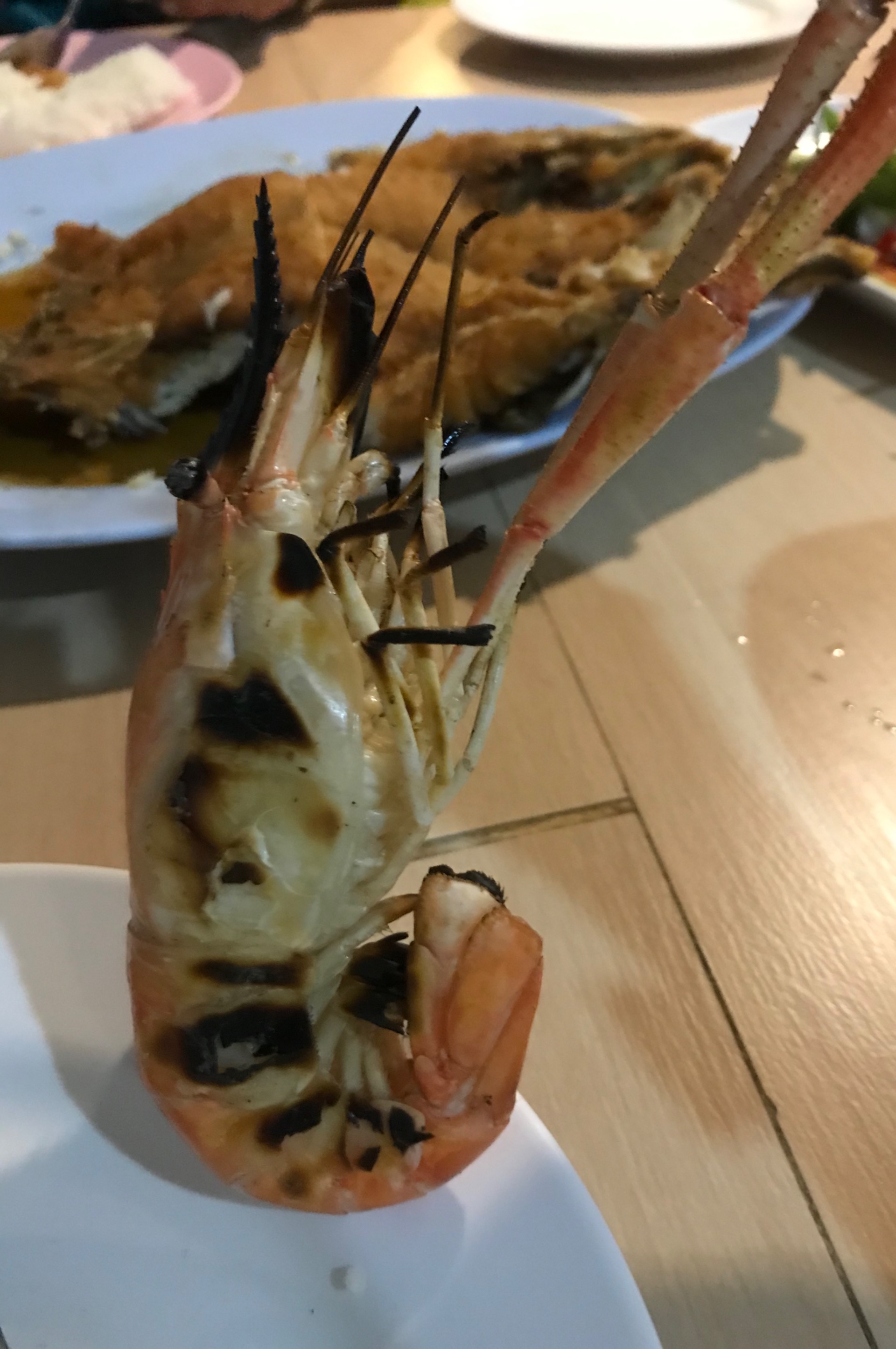 This dish is 1 kilogram of grilled shrimp, or 14-15 shrimps. You can not order just 2-3 shrimp, but they accept orders of a half kilogram or 1 kilogram. It's not expensive, about 580 baht or $20. It was fresh and delicious. I had it with spicy seafood, which made it even more yummy.