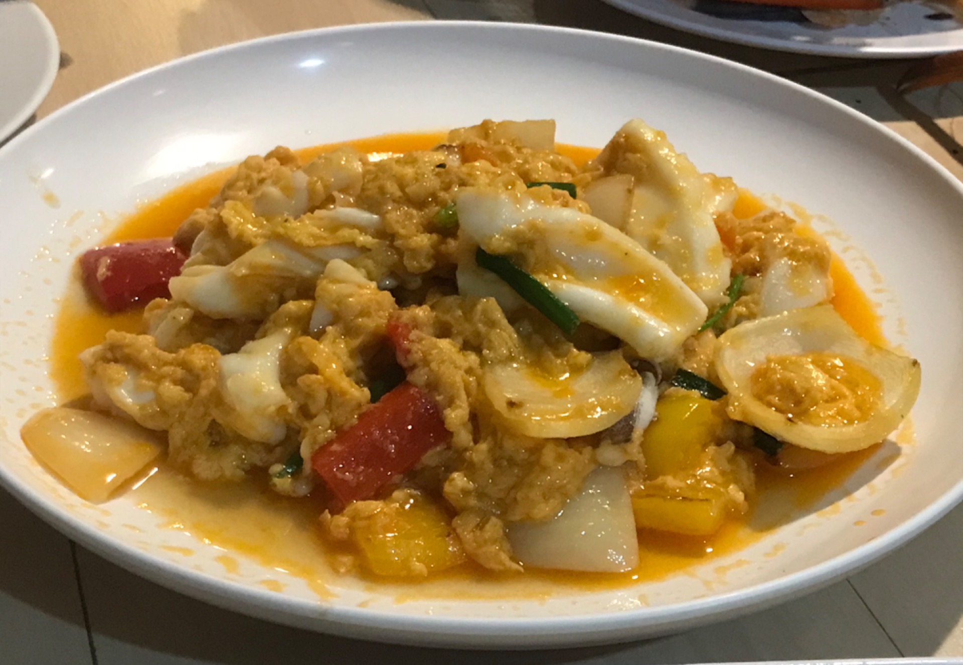 Stir fired squid with salted duck eggs. It was not spicy compared to the others dishes.