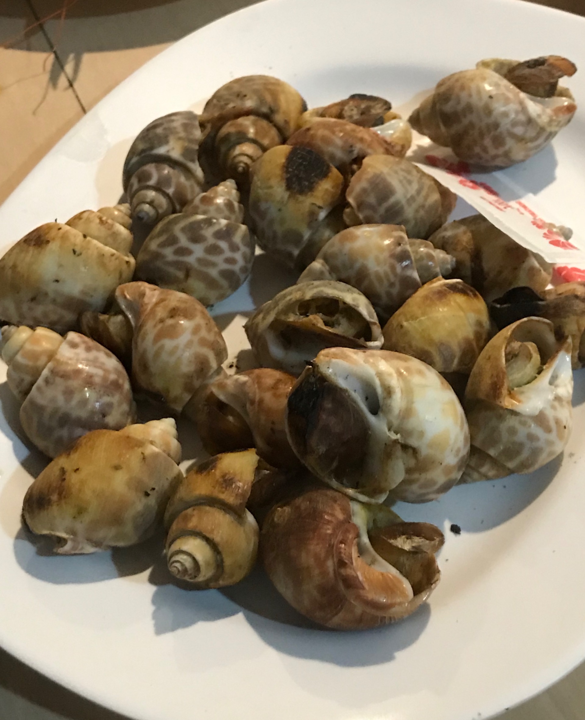 Boiled babylonia areolata. My brother liked this one. I just tried 4 or 5 pieces. It was good with seafood sauce. I liked it too.