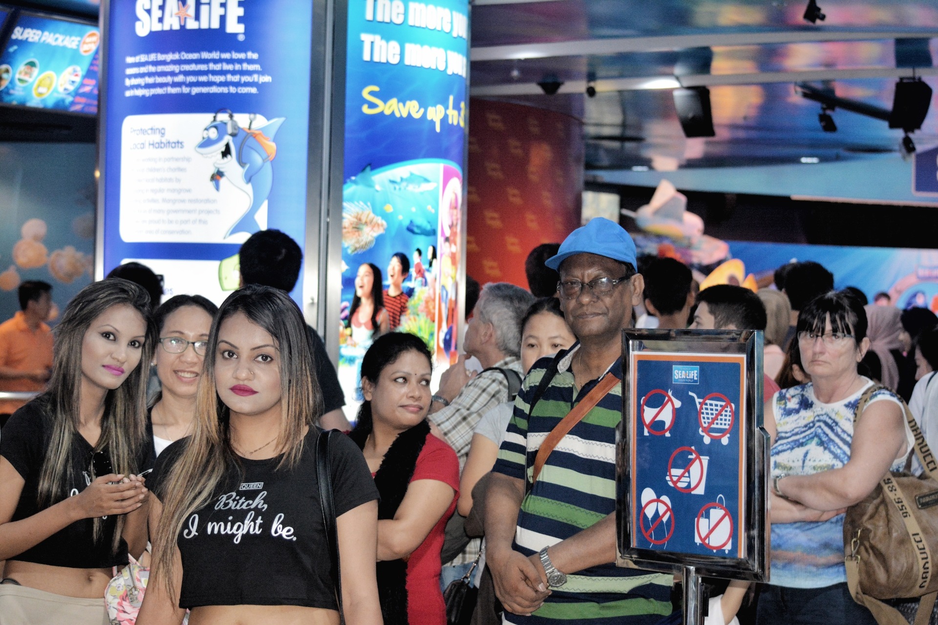 We were 6 people so Tree bought tickets for us before. This place is known as Siam Paragon Ocean World or Siam Paragon Sea Life, both are correct. We had to wait for 30 minutes to enter into the world because the queue was large. Many people with family and children come here to explore this world.