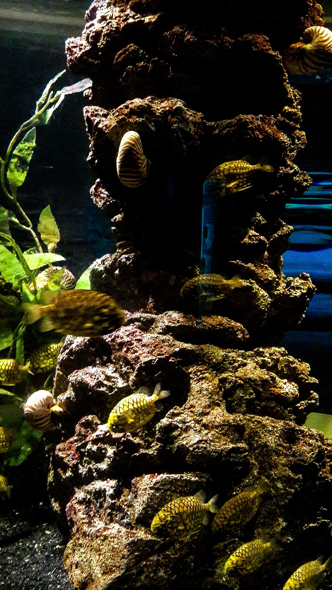 Aquariums are different from one another according to the creatures and their habitats. Planktons, small fishes were kept separately and zone and lighting system was completely different.