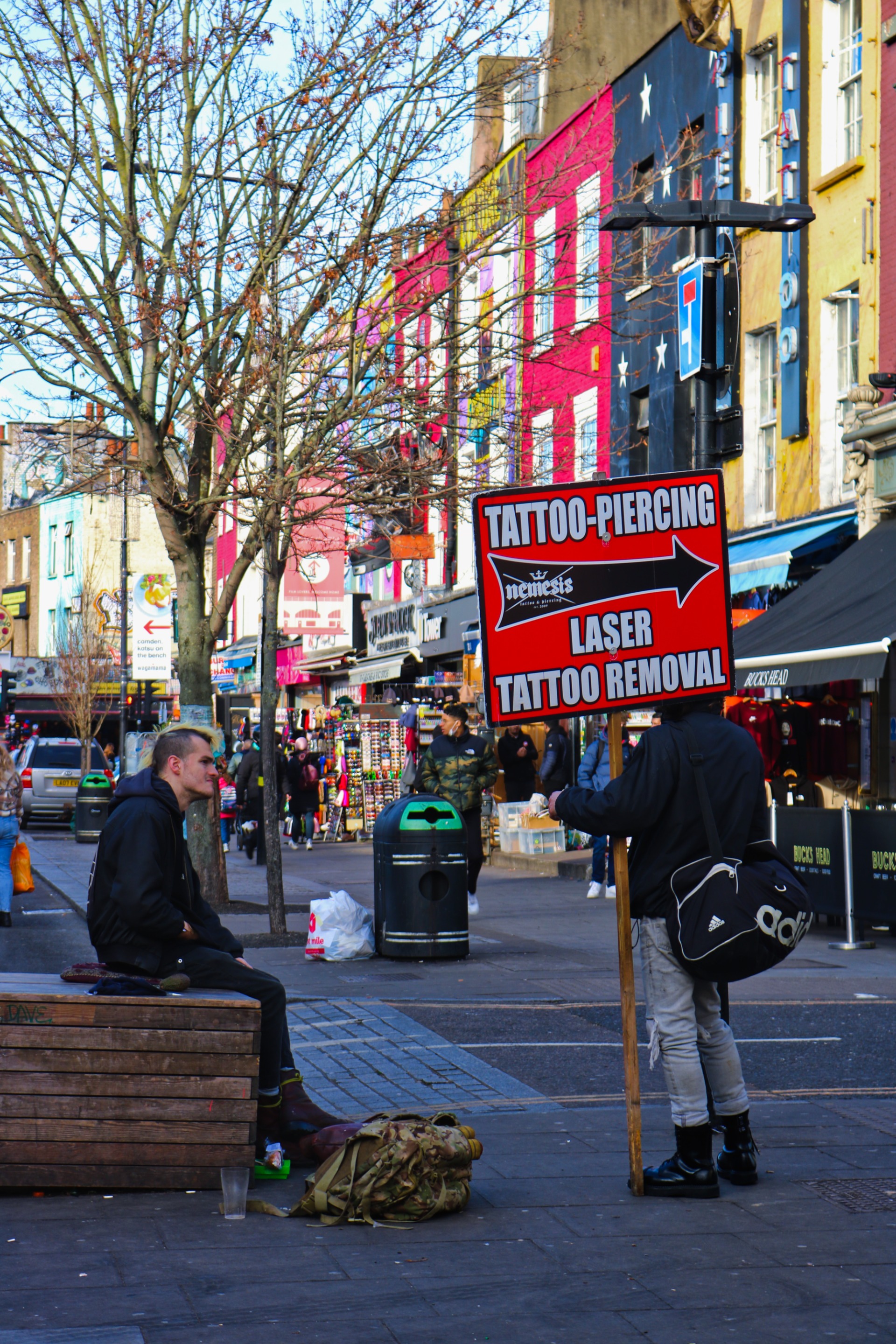 If I could choose an image to define the vibes of Camden Town, this one below would be it. Camden Town is well known for the Punk/Alternative lifestyle and they are very proud of it. I have to say that probably I can dig deep and find a similar photo like this from almost 15 years ago when I cam here on Holidays. And this time they caught me with the camera pointing at them. Literally looking into the lens and pointing, unfortunately I didn't have any cash with me.