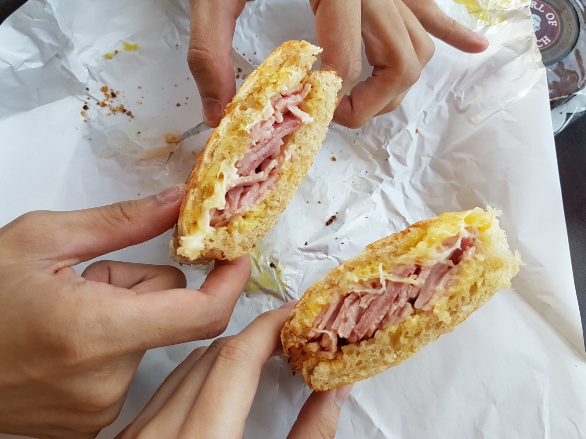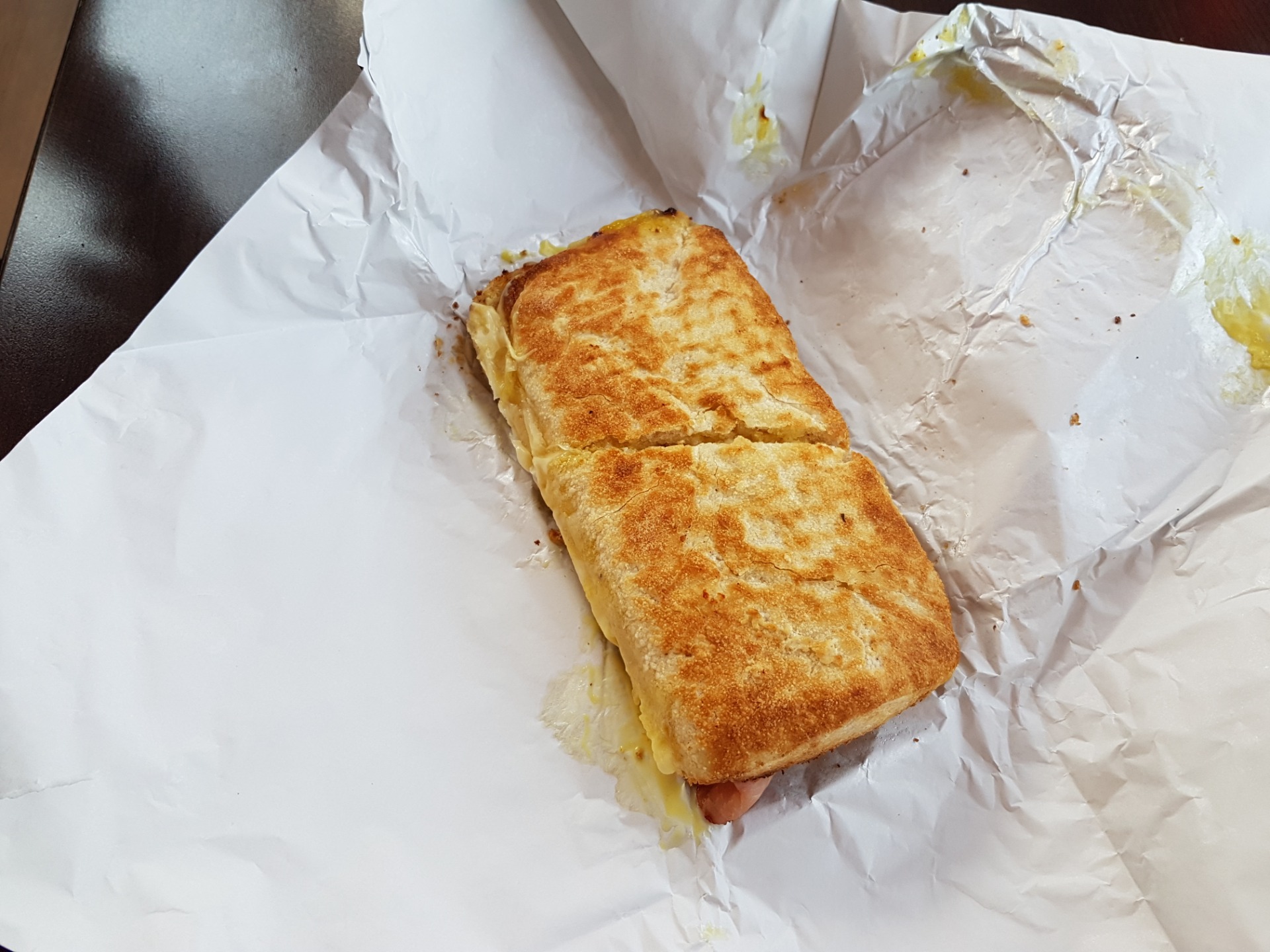 The sandwich was pretty good actually; it was crispy on the outside, and neatly cut into 2 pieces already!