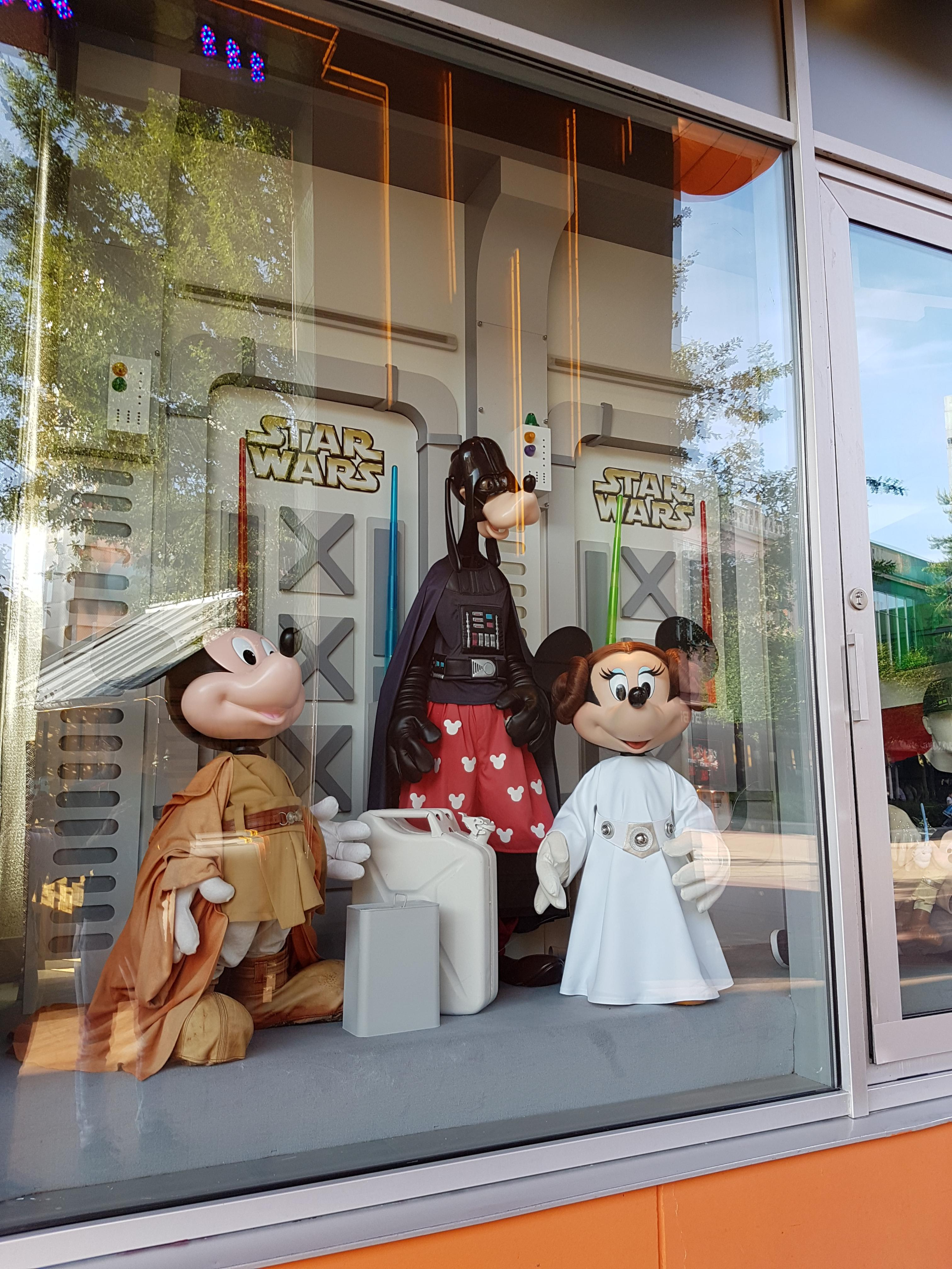 We also saw this interesting display; with Mickey, Minnie and Goofy as Star Wars characters! I like how Goofy is still wearing his Mickey Mouse boxers. XD