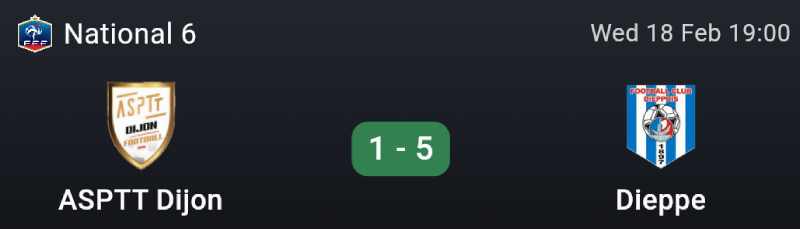 We head to ASPTT Dijon and turn the away day into a party: 1–5 and never in doubt. Three points and a goal avalanche that keeps Dieppe locked in with the league's elite.