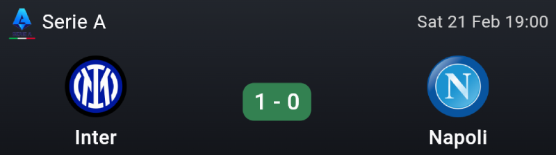 San Siro ospita uno dei big match dell’anno e le statistiche parlano chiaro: annulliamo il fortissimo Napoli, che chiude senza nemmeno un tiro nello specchio. Il risultato però resta “solo” 1–0, ma sono tre punti dal peso specifico enorme contro una delle rivali più temibili nella corsa allo scudetto, che ci vede ora a +5 sul Lecco secondo.