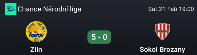 Cinque gol e quinta vittoria consecutiva in campionato per uno Zlín lanciato a tutta velocità. Il 5–0 contro il Sokol Brozany ci proietta momentaneamente al settimo posto e conferma che la nostra operazione rimonta è entrata ufficialmente nel vivo.