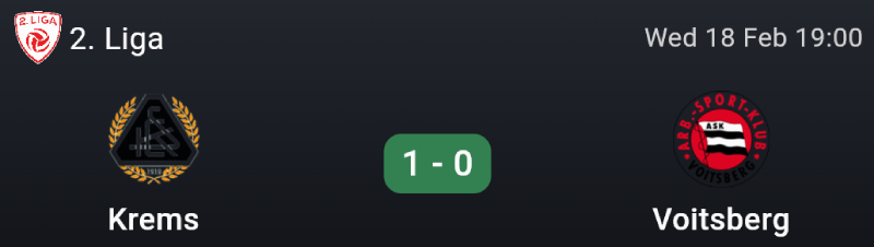 Krems also play a second straight at home, but here it's two wins from two. The 1–0 against Voitsberg is the classic gritty but vital success that brings continuity and gets us properly back on track.