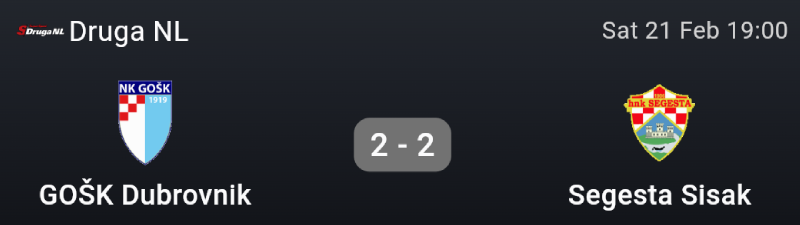 The "judgment day" finally arrives against rivals GOŠK Dubrovnik, and the verdict is postponed: thrilling 2–2 with chances and turnarounds that don't settle the power balance. We stay second, 10 points clear of third, with the feeling the battle is just beginning.