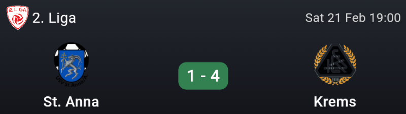 Third straight win for a completely reborn Krems. The 1–4 away at St. Anna confirms a hot streak that finally lands us in the left half of the table and completely shifts our seasonal mood.