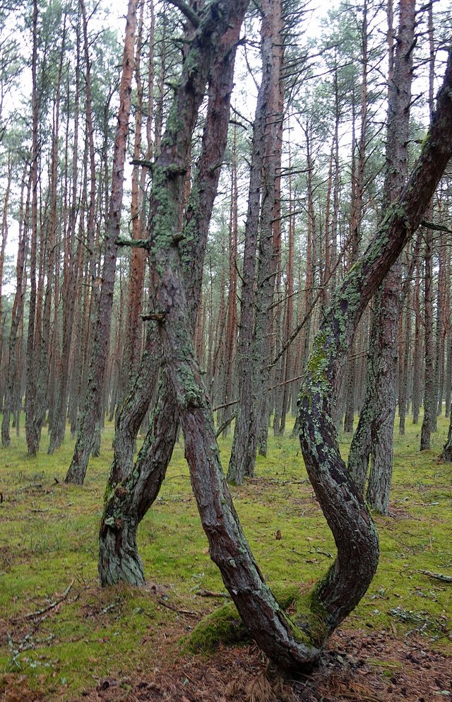 Ученые предполагают, что в массовом искривлении сосен в этом месте виноваты бабочки побеговьюна и их гусеницы, повреждающие деревья во время роста. Но это не точно. Scientists suggest that the mass curvature of the pines in this place is due to the shoot moths and their caterpillars, which damage the trees during growth. But this is not certain.