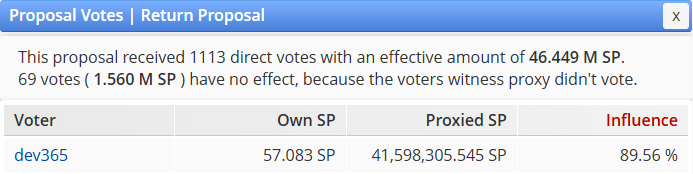 Well, we can be fairly confident that their on-chain dominance is less than 10%. If you look at the return-proposal voting from SteemWorld, we see that they have 41.6 million STEEM voting.