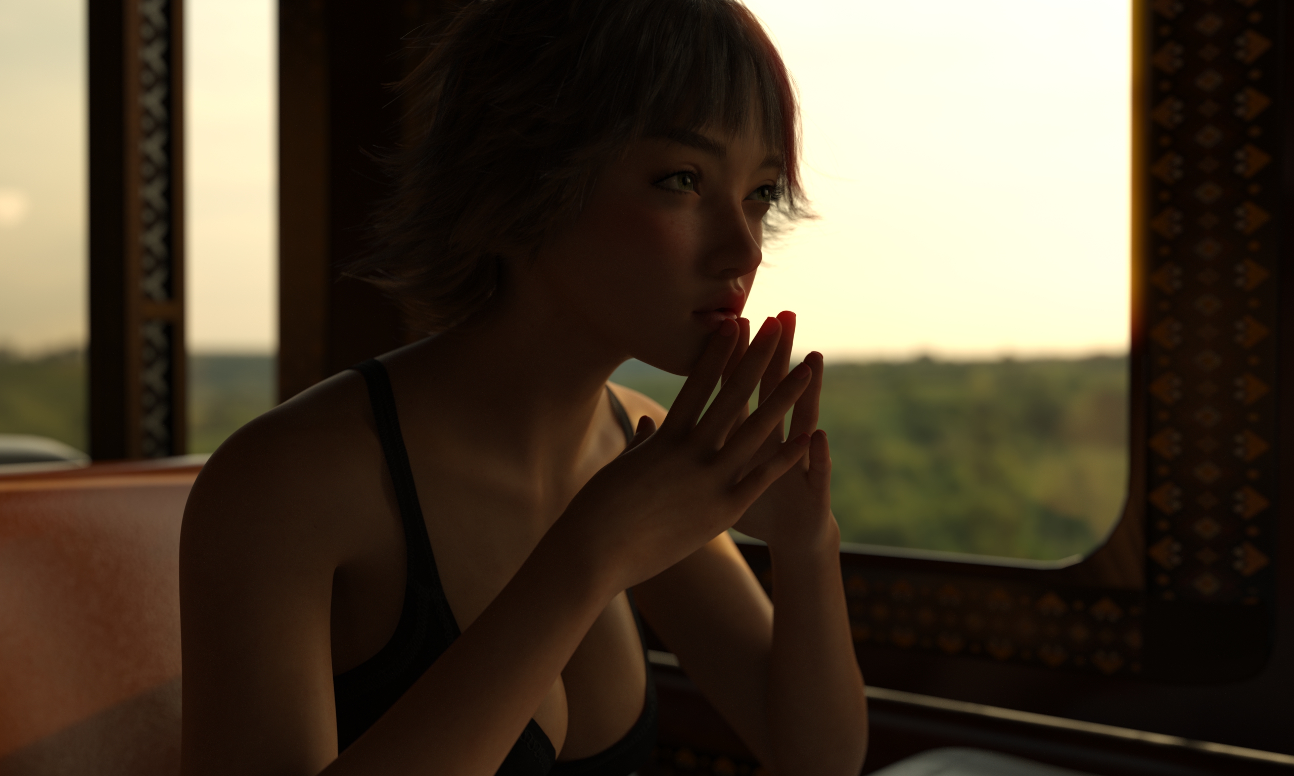 Added the semi-completed model, after I morphed the body, changed her position, facial expression, and added clothes.