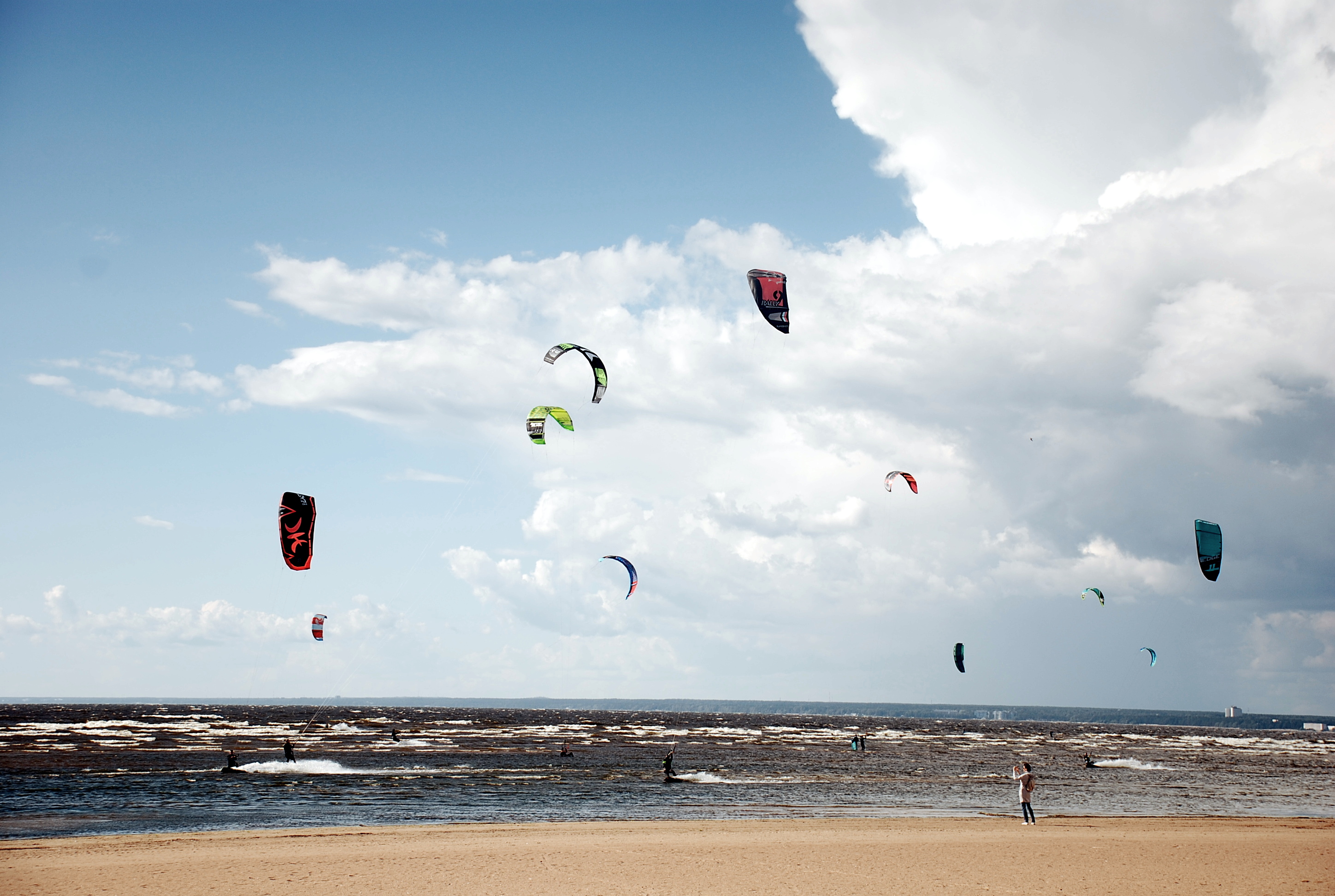 There are many opportunities to engage in various types of water extreme sports in St. Petersburg and its surroundings. For example, rafting enthusiasts go to the rapids of the Vuoksa River, surfers ride on Lake Ladoga and the Baltic Sea near the village of Solnechnoye, and one of the sea beaches of Sestroretsk was chosen by kitesurfing lovers. There are always a lot of them there, but on the day when I took these photos, I think there were not enough of them - probably because it was the middle of the week, that is, a working day)