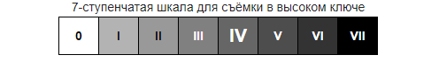 In bambukas zweiten Post steht, bei einer High-Key Aufnahme sollten die dunkelsten Bereiche nicht über der zweiten Stufe der folgenden siebenstufigen Grauskala hinausgehen.