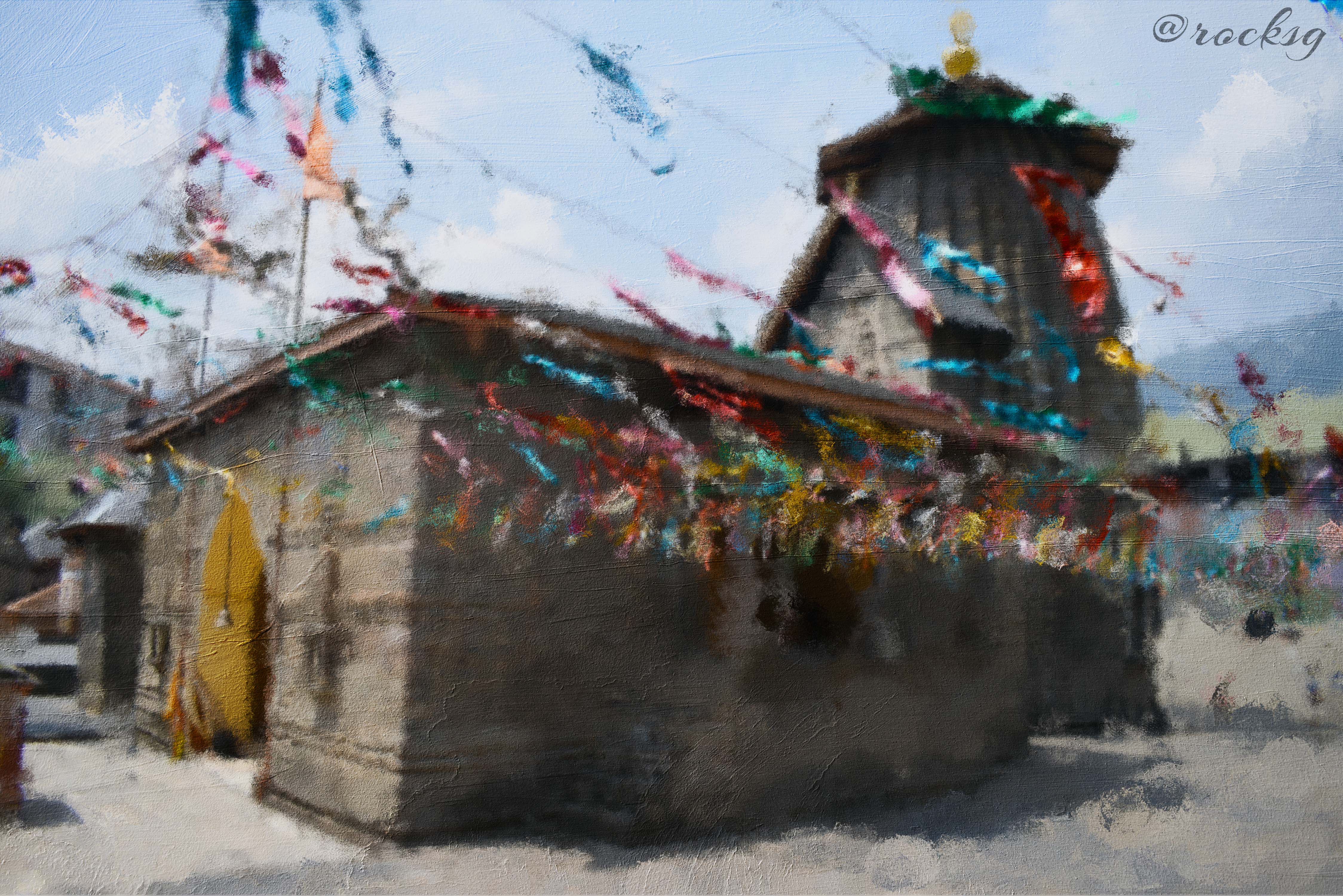 A beautiful digital painting I have painted in Adobe Photoshop. This is an ancient hindu temple which I visited two years back in Himanchal Pradesh. I clicked many great pictures of this temple and today I did a digital painting of it. The whole painting took around 5 hrs time to complete it and you can see the details in the following pictures.