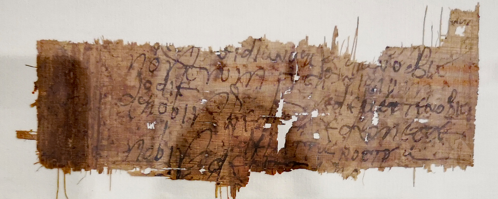 Das Papyrusfragment aus dem 6. Jh. n. Chr. gibt zwei Verse des Vater-Unser in lateinischer Übersetzung wieder.