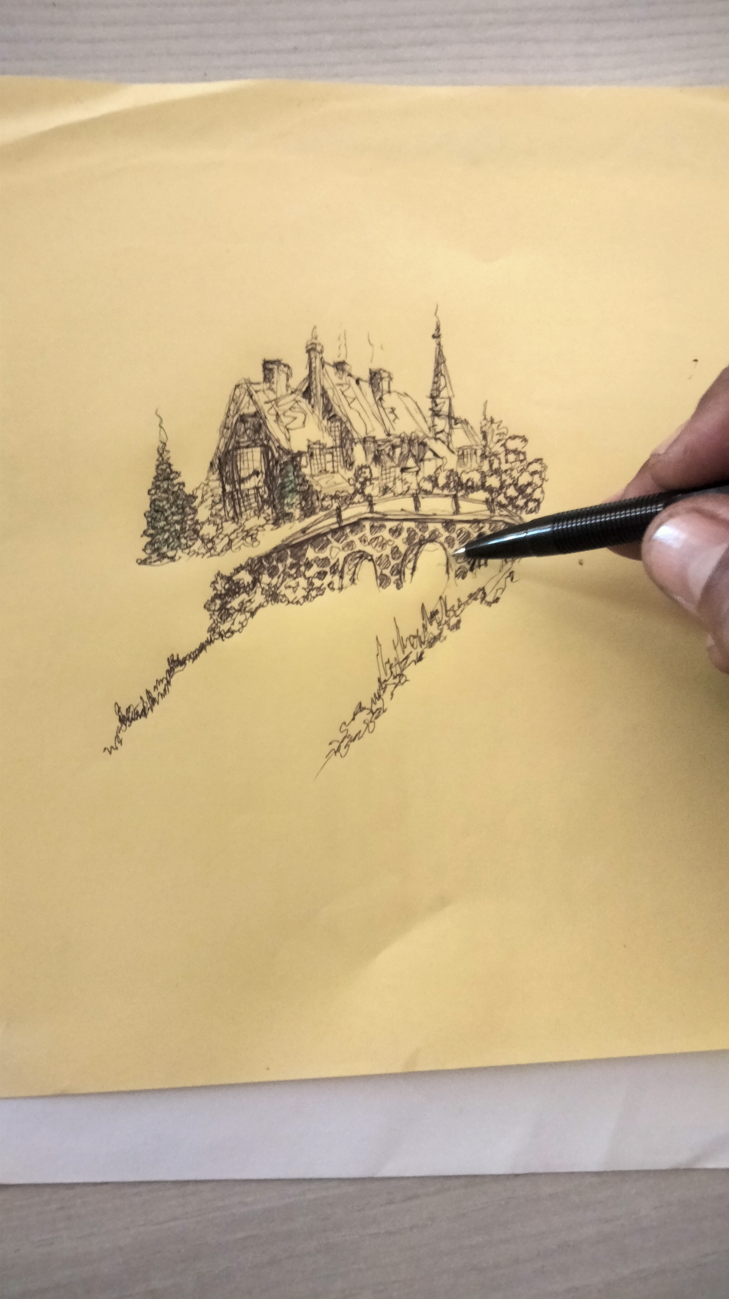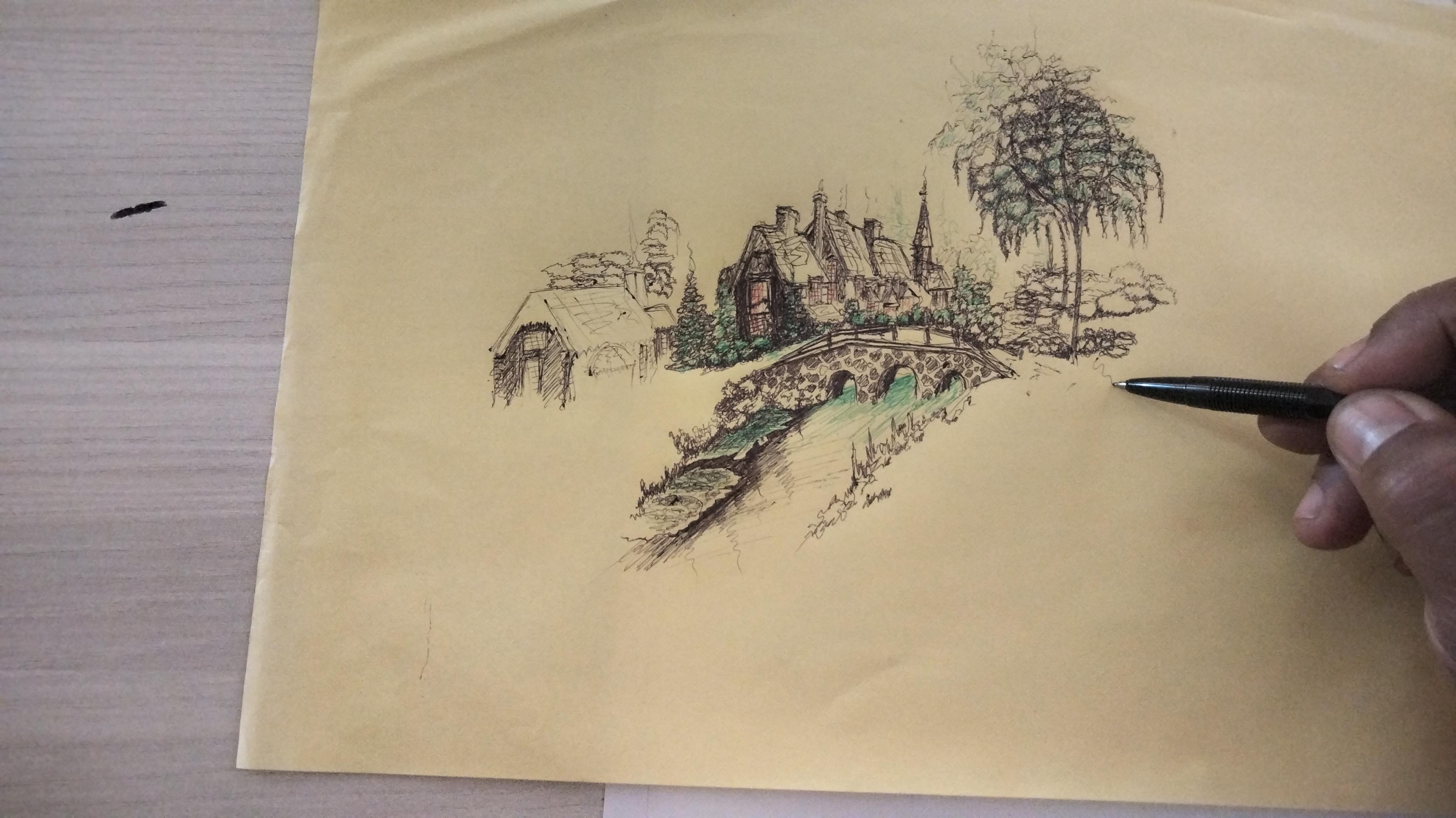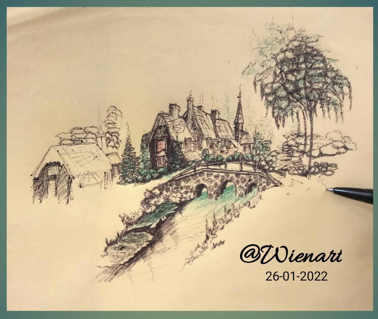 on this occasion I tried to make a sketch of a beautiful natural landscape painting, while the process of making it is still in the style of a scribble pen painting, for the results are still not optimal because the art I have is not perfect and still needs to be sharpened again, actually I am ashamed of my friends here, by posting works that are not worthy of publication, and I really need input from WOX friends, to improve the quality of my knowledge in drawing, from the start I really like drawing and I am self-taught without a teacher, from childhood until now I really want to buy equipment for painting and until now I don't have tools for painting, so please forgive me when I post with quality as it is,