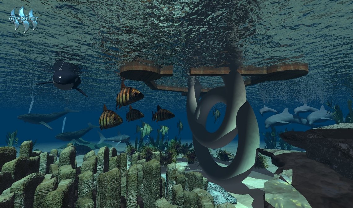 El movimiento de las olas hace su efecto en el fondo del mar en su ir y venir y moldea con arte las rocas. Les dan una estilizada forma rectangular donde peces y delfines en medio de tal decoración festejan lo que ha de venir.