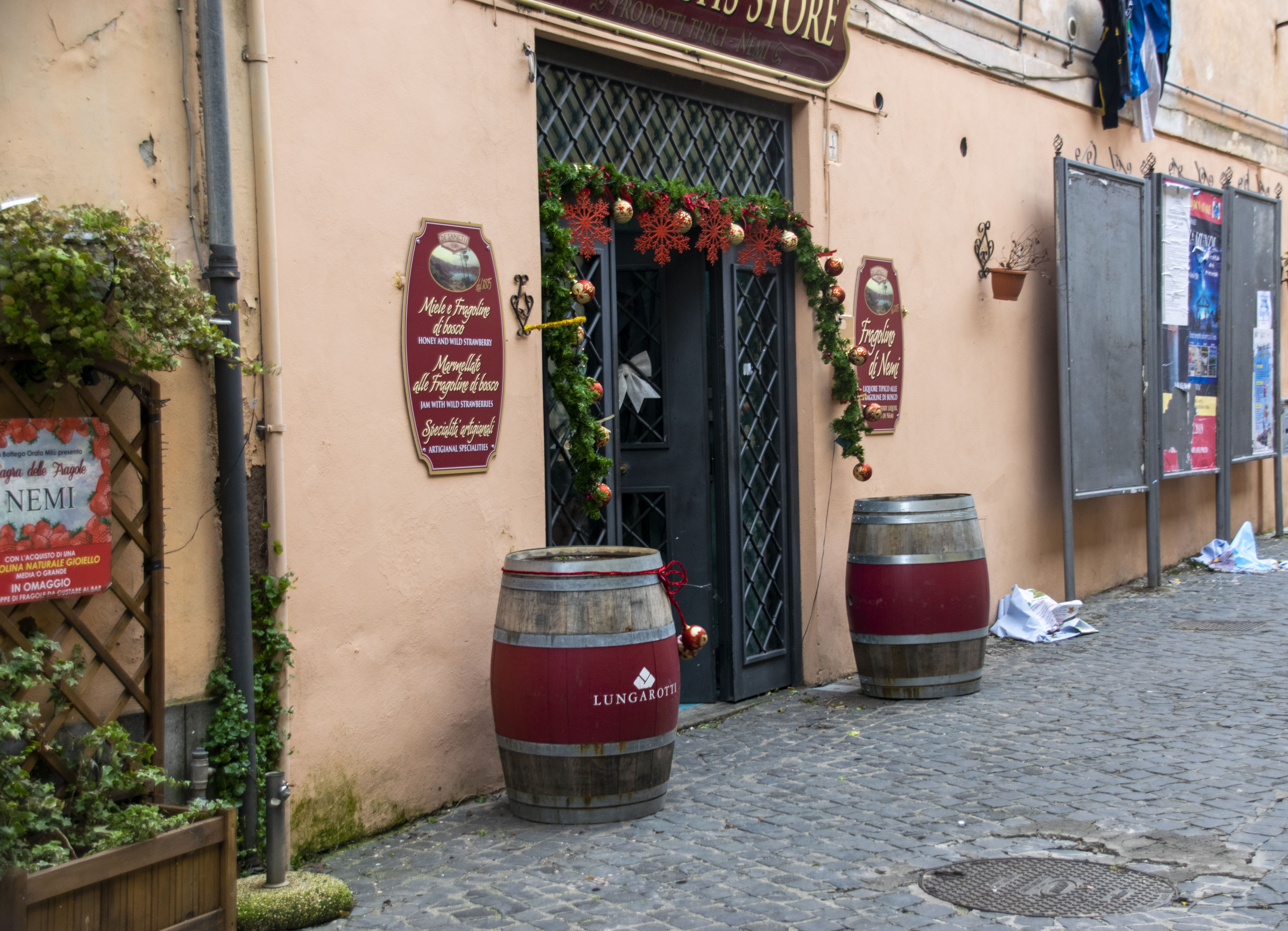 Nemi is a city-municipality, subordinated to the administrative center of Rome. A very small compact city, stuck to the edges of the old crater of the volcano. And I felt the real Christmas spirit here! I've never seen anything like it before.
