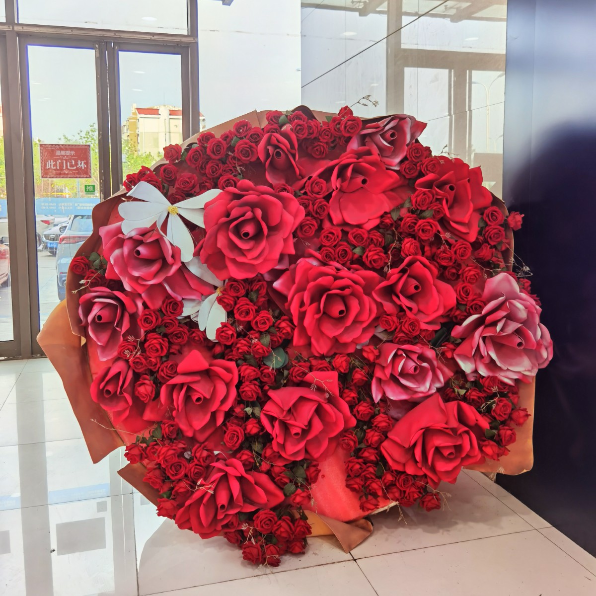 进超市,发现门口好大一束玫瑰花。娇艳欲滴的红,层层叠叠的花瓣,在灯光下闪耀着迷人光泽。这浪漫的气息瞬间弥漫开来,仿佛在诉说着甜蜜的情话。路过的人们纷纷侧目,或是惊叹,或是露出会心微笑,它就像一把开启美好氛围的钥匙,让平凡的购物之行也多了几分温馨与诗意。