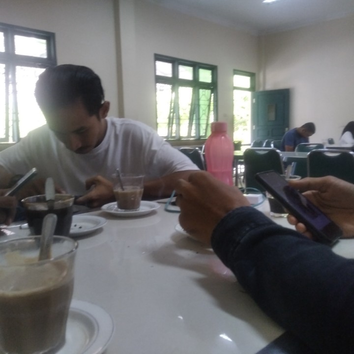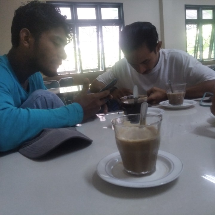 di pagi yg cerah ini saya sedang ngopi bersama anggota bentang adventure di kantin kampus almuslim di matang Bireuen